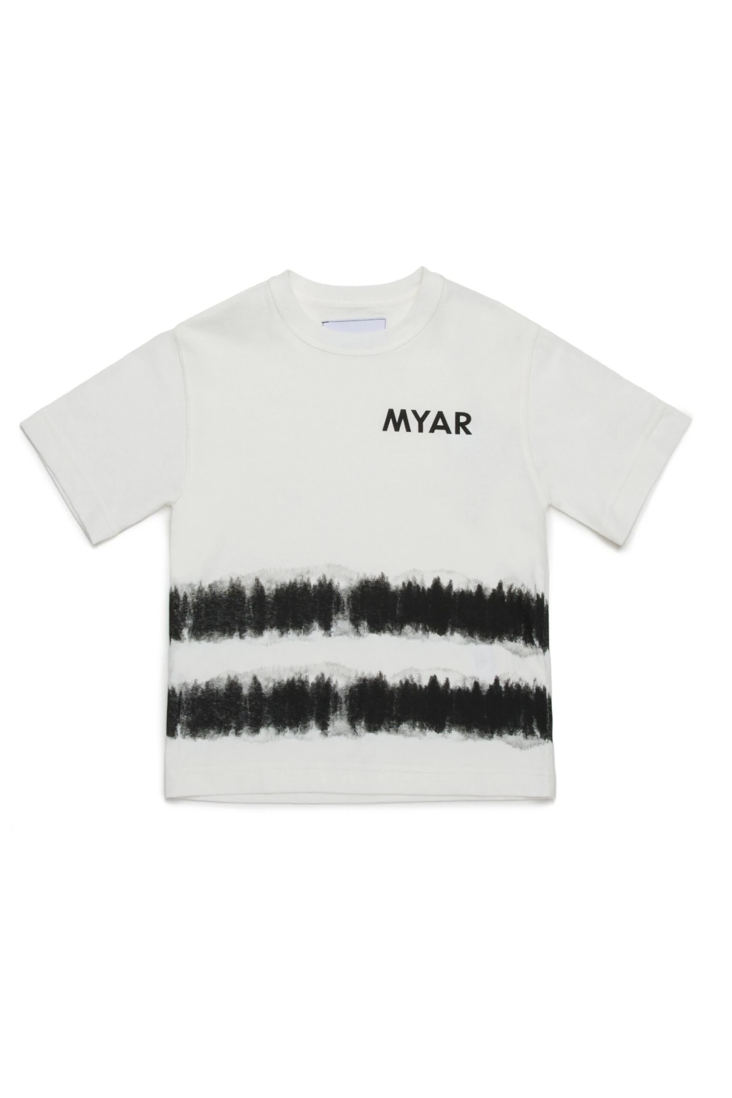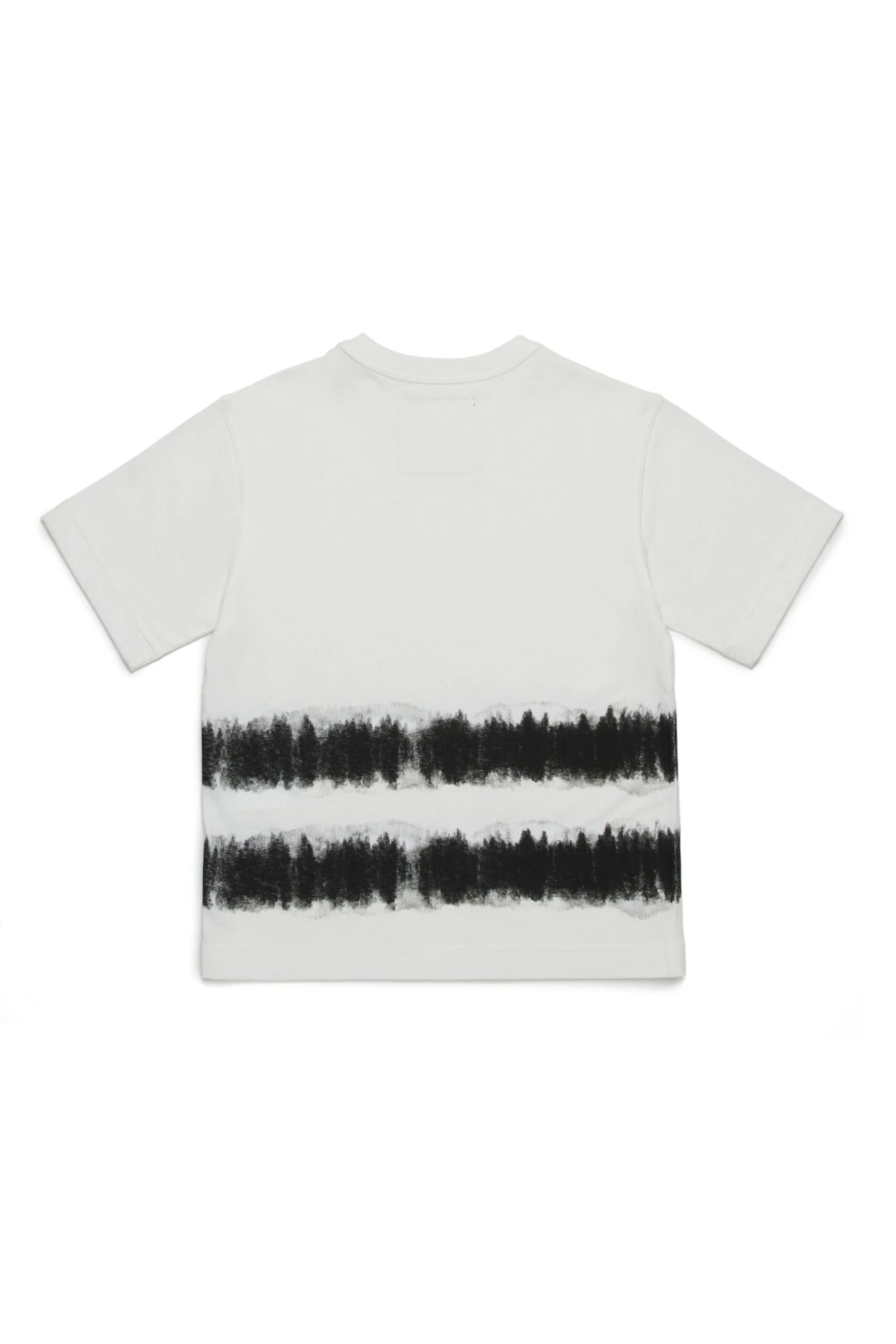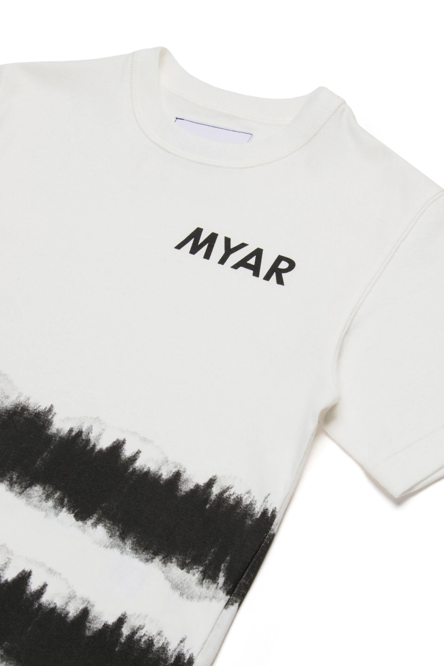 Crew neck T shirt made with deadstock fabric and rib on the neck. Silk-screen print with tye-die effect on the front and back representing the residual oil moving in the sea.