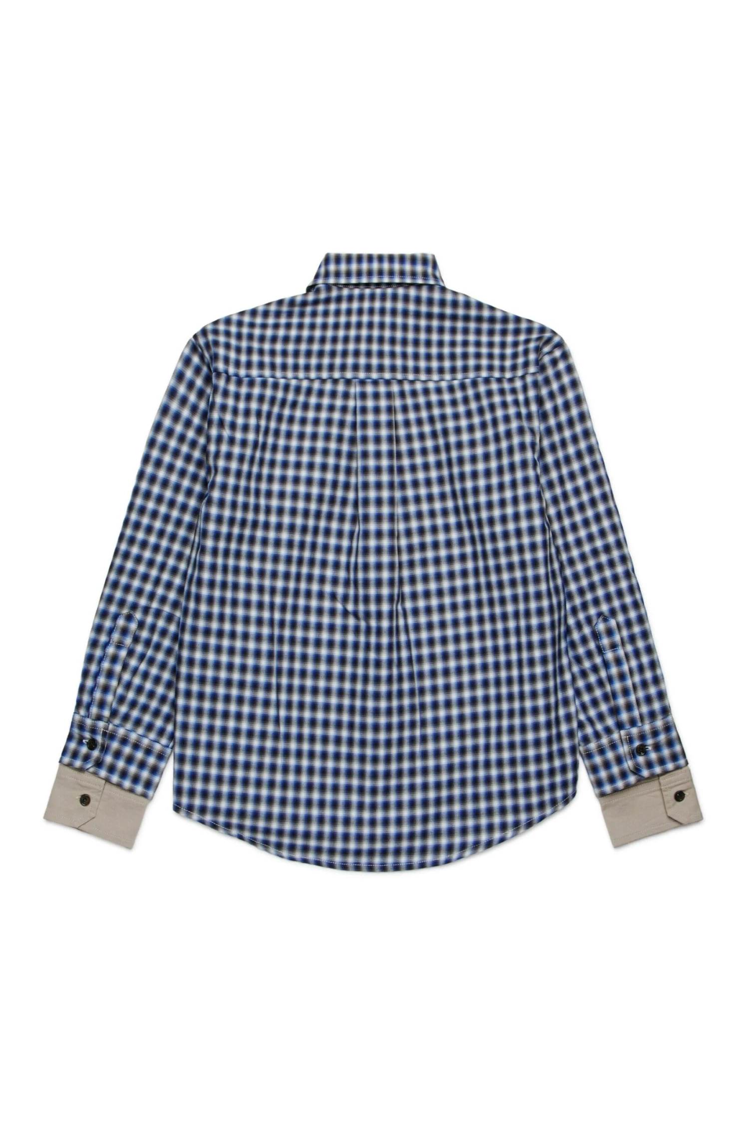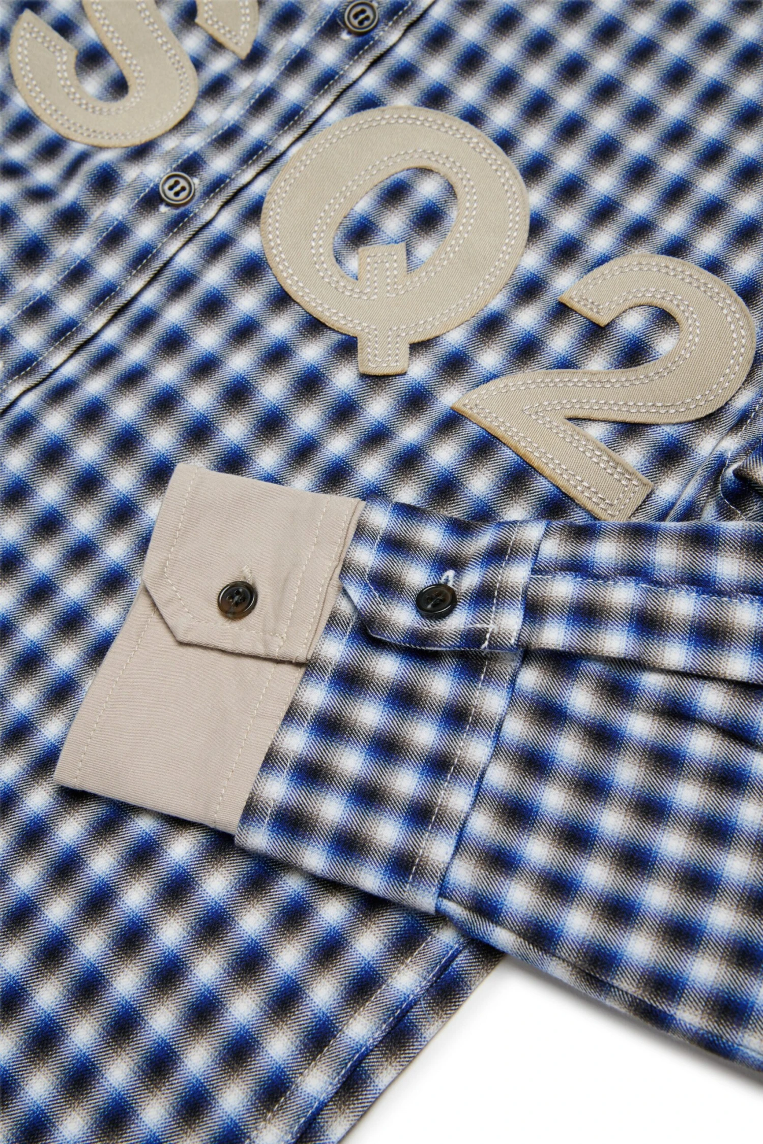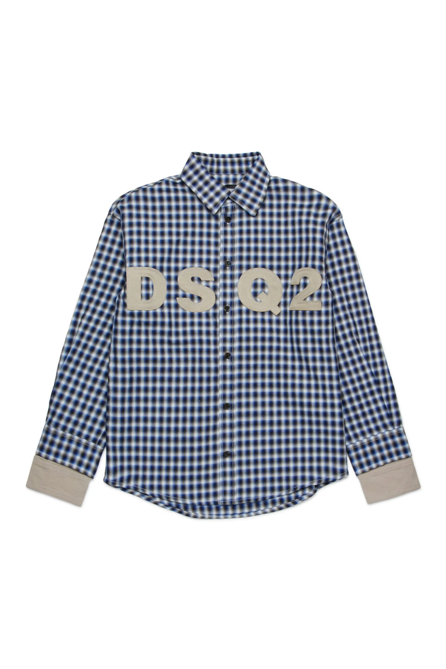 Long-sleeved shirt in lightweight cotton. Featuring an all-over print check pattern. DSQ2 logo with raw cut hem applied on the front. Double cuffs with contrasting colour insert.