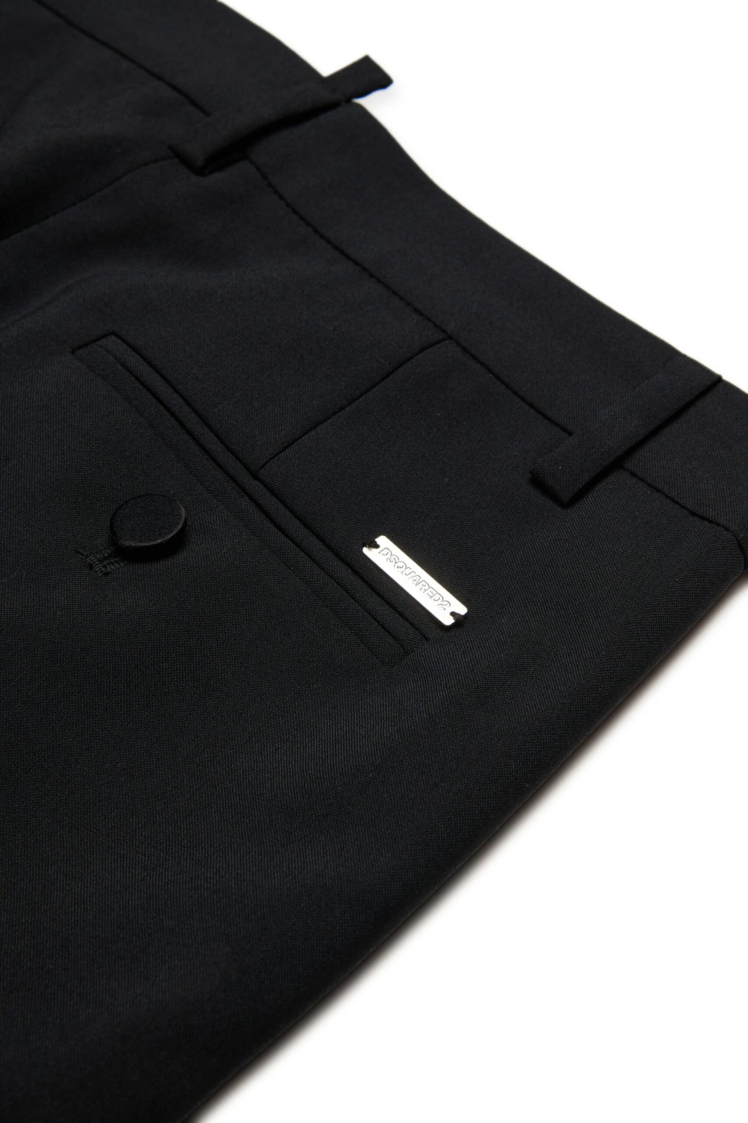 Formal chino pants in cool wool. American-style front pockets. Metallic logo plaque above one of the back pockets. A perfect garment for ceremonies and special occasions.