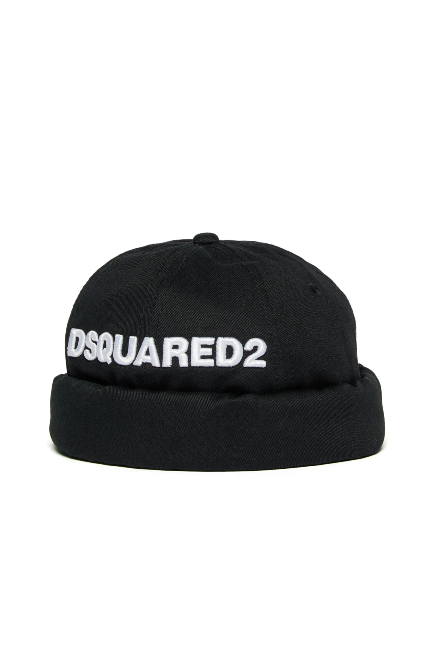 Gabardine summer beanie. Dsquared2 logo embroidered in contrasting colour on the front. Adjustable belt closure at back. Made of 100% cotton.