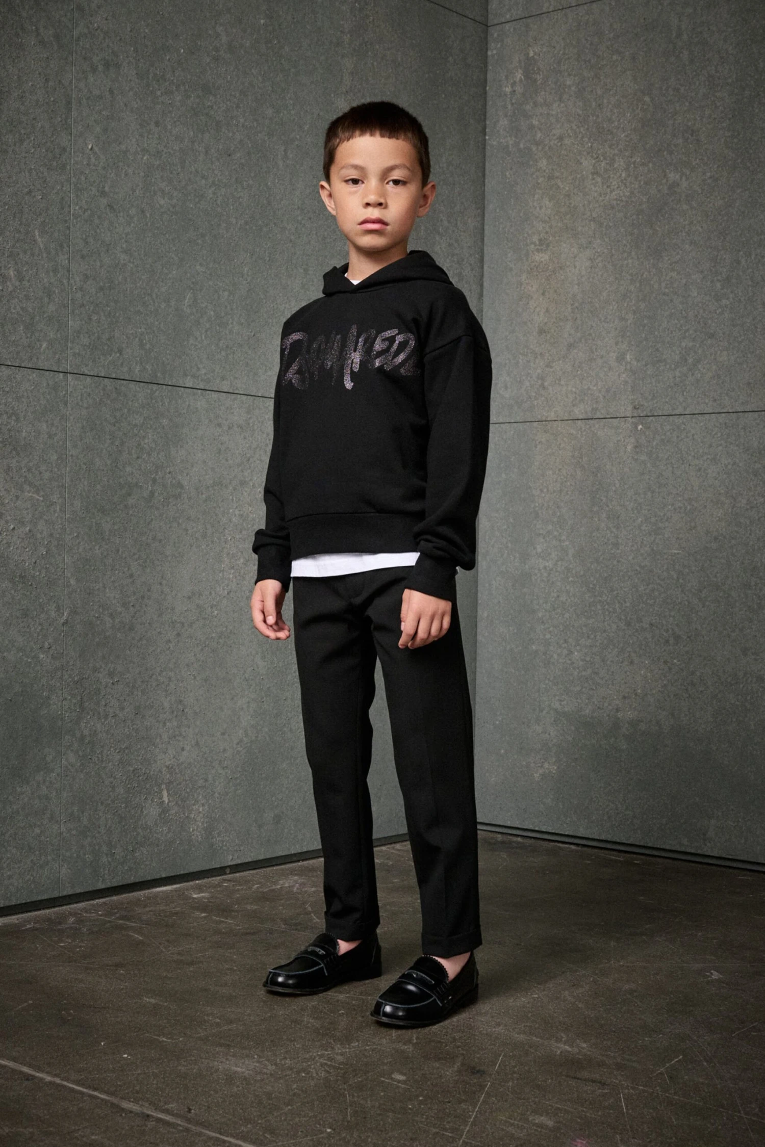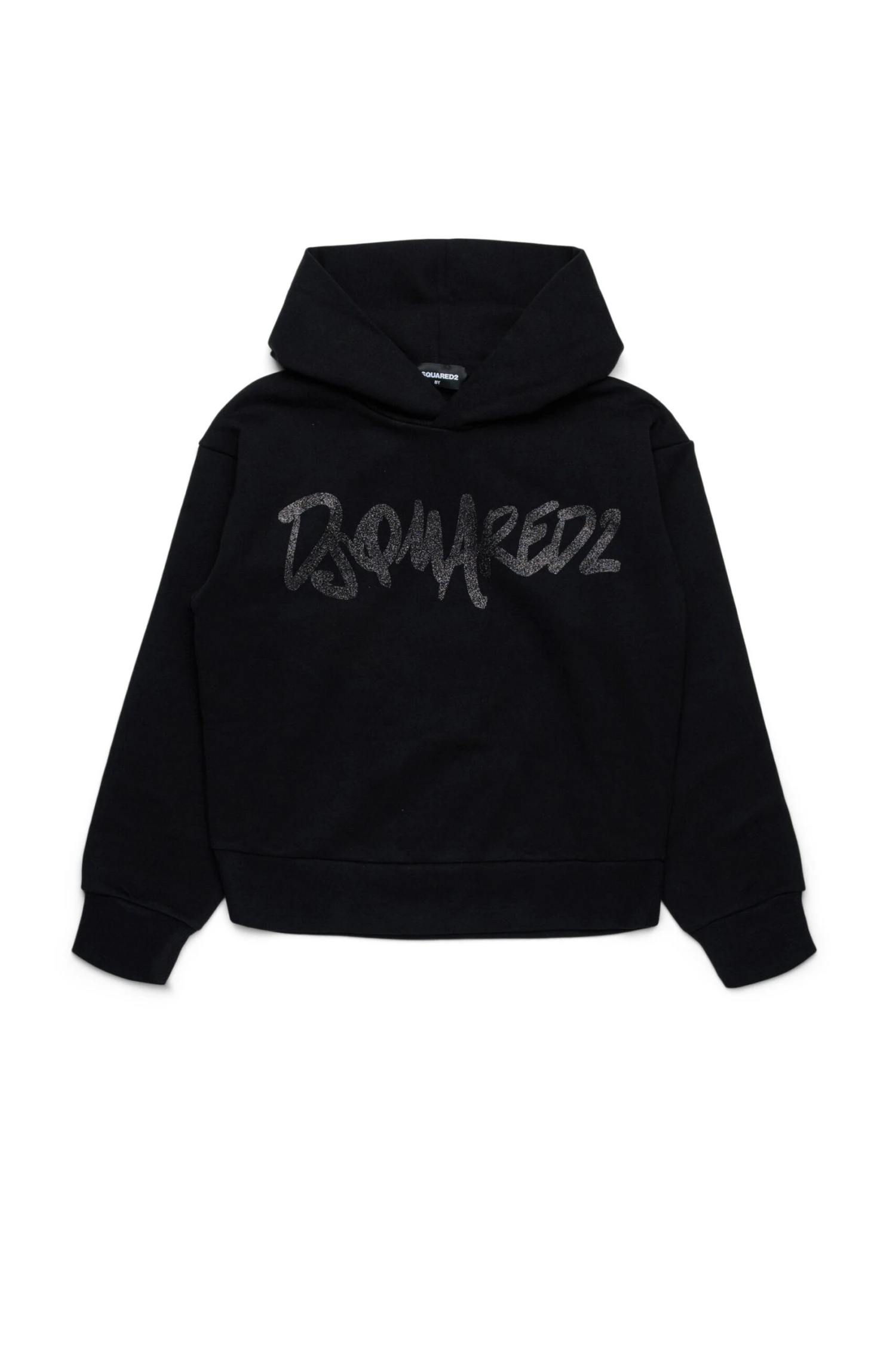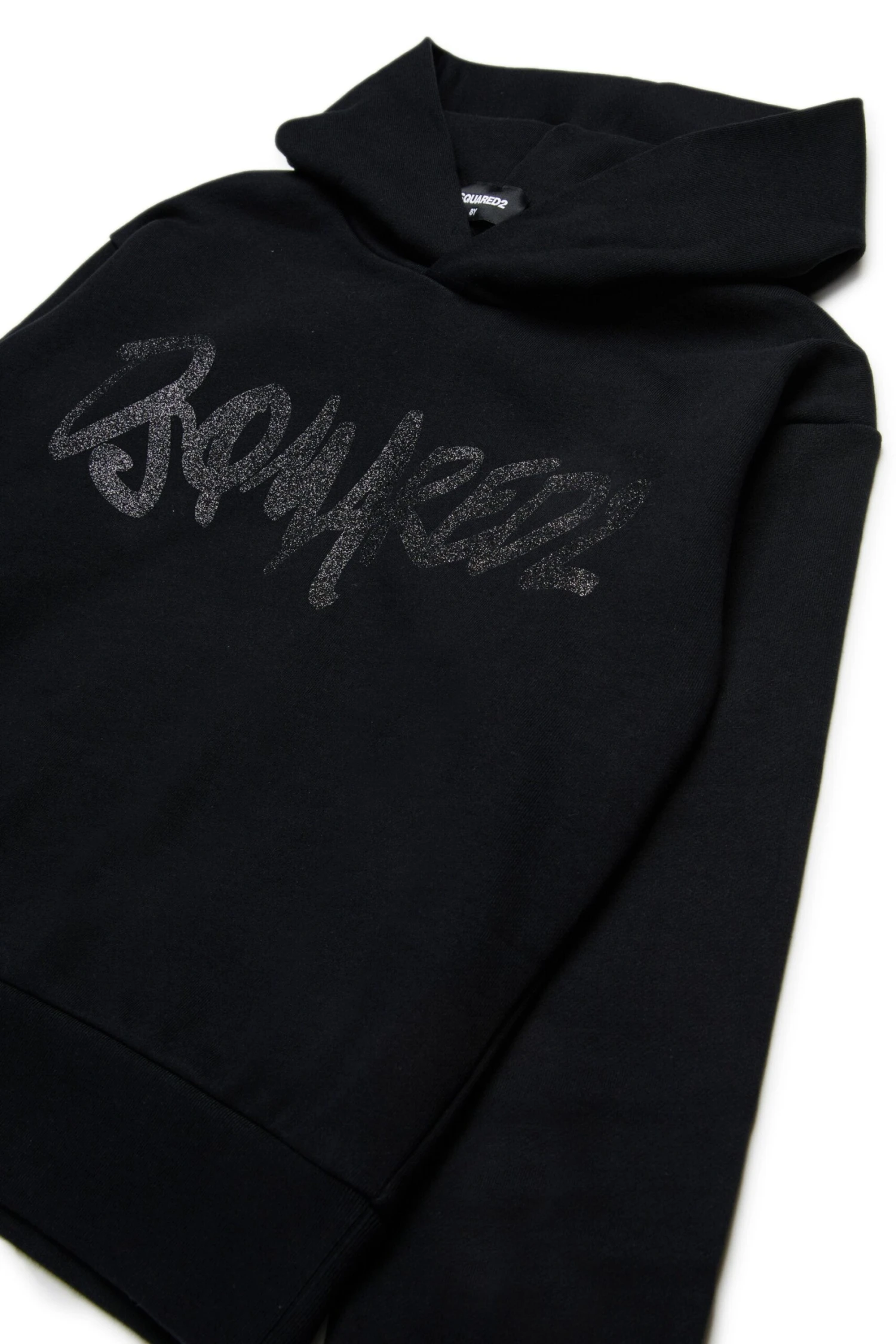 Long-sleeved hooded sweatshirt. Dsquared2 logo with applied rhinestones on the front. Ribbed cuffs and bottom construction. Made of 100% cotton. Perfect for evening parties and special occasions.
