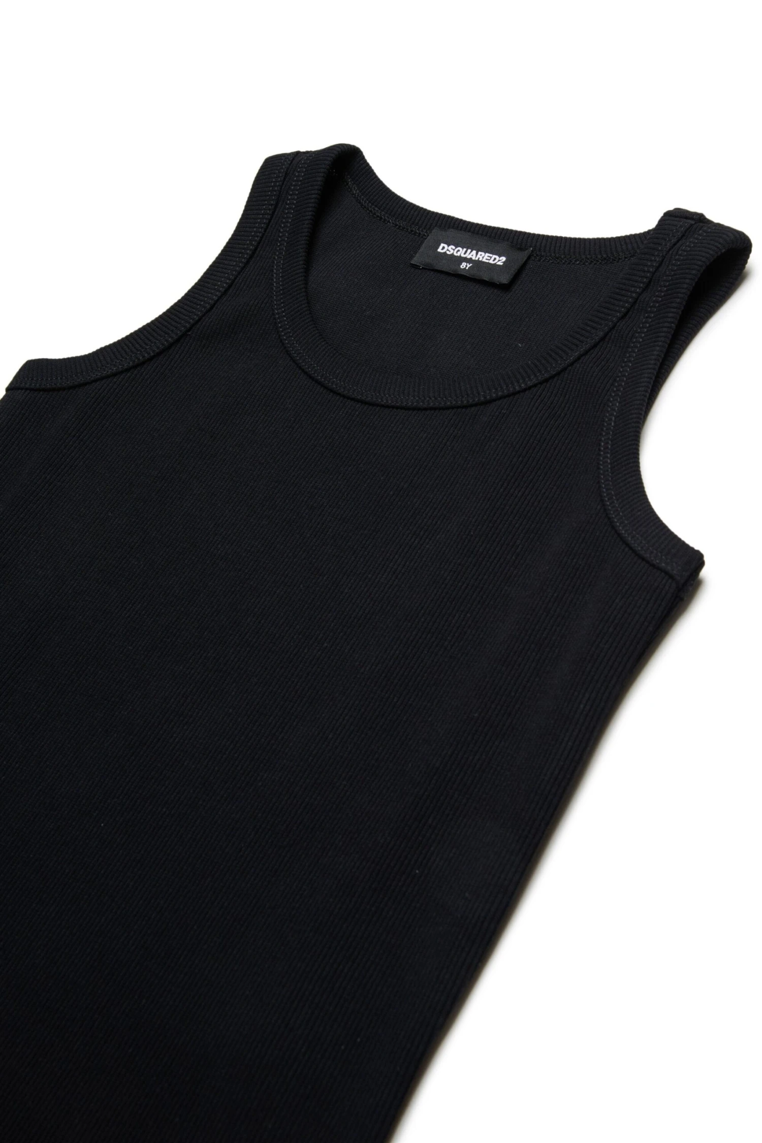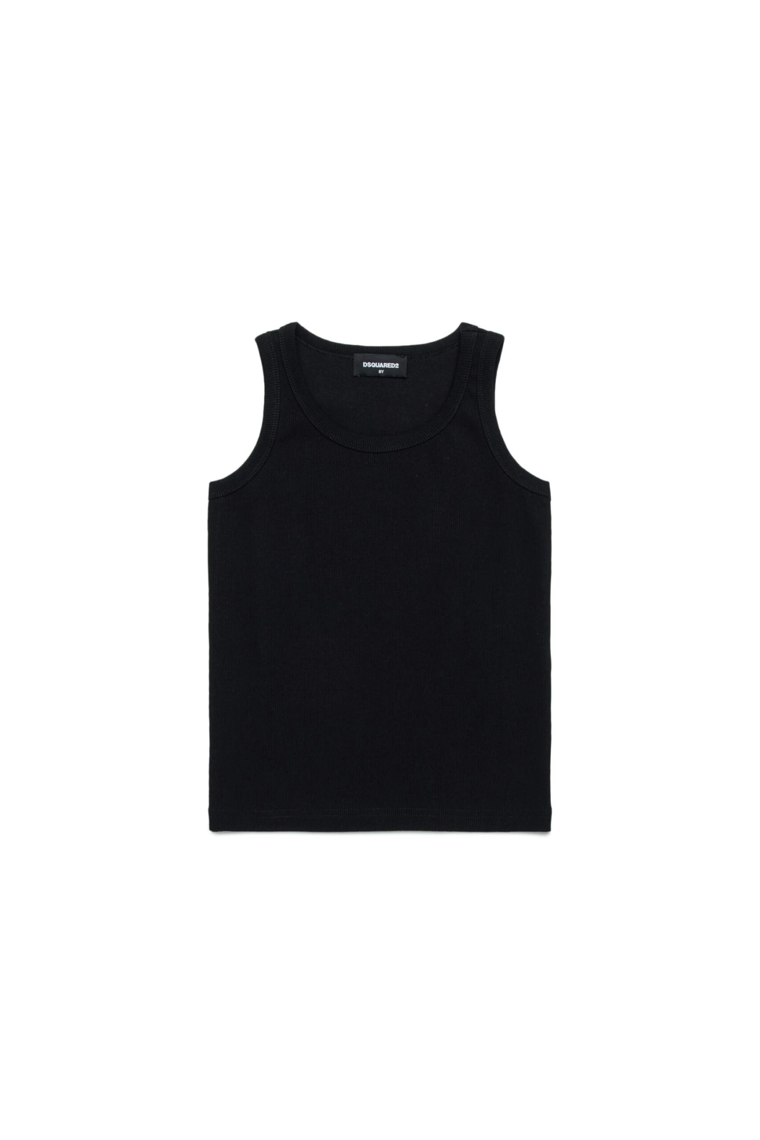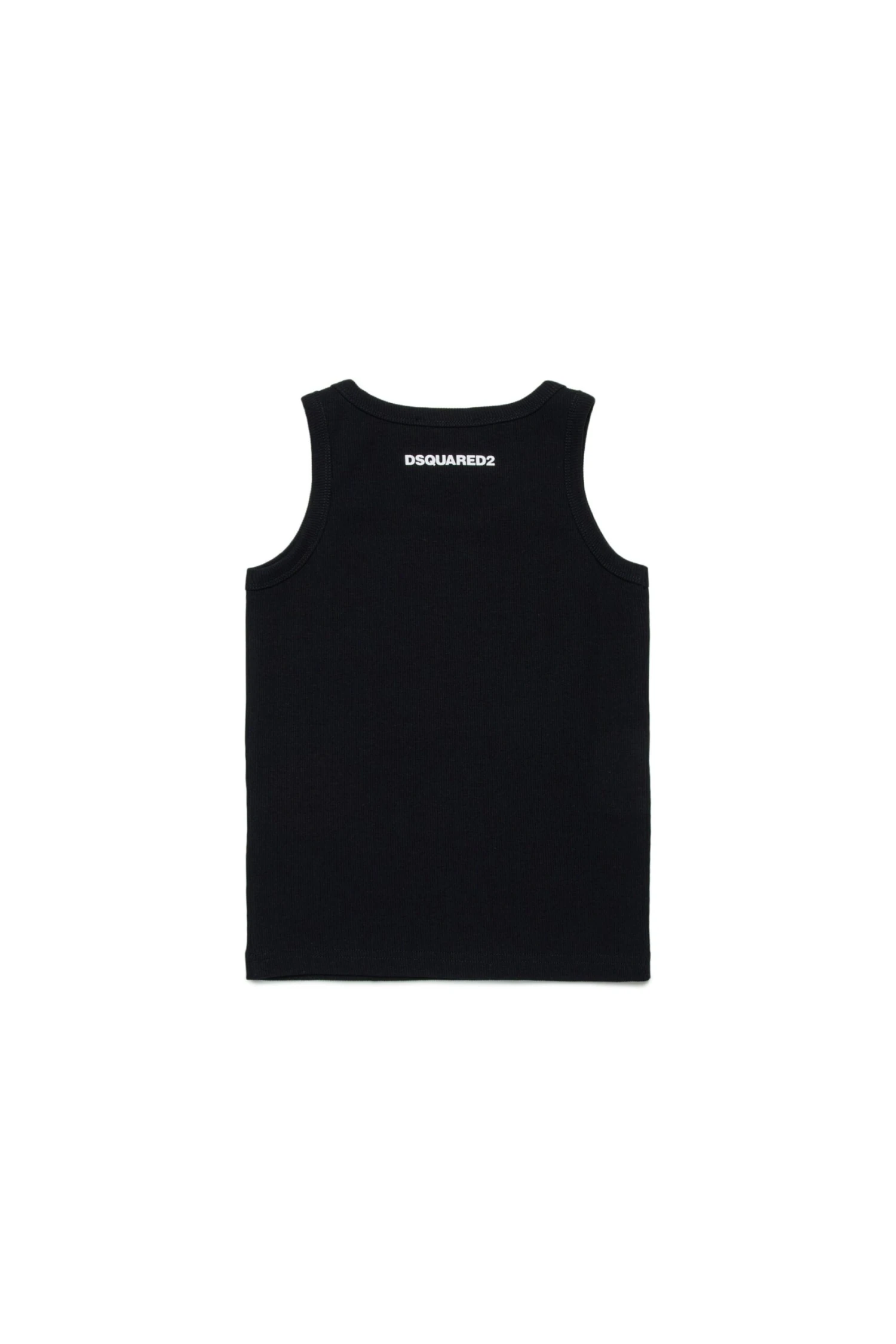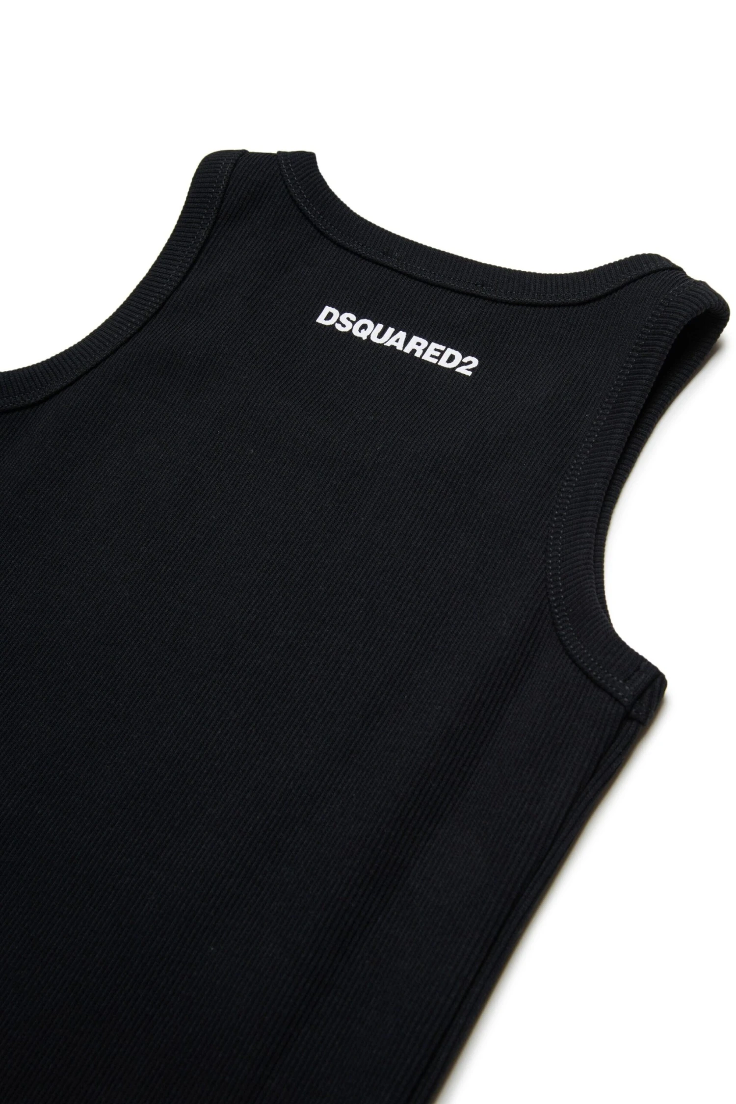 Sleeveless crew-neck T-shirt in ribbed stretch cotton jersey. It features a contrasting colour Dsquared2 logo on the back.