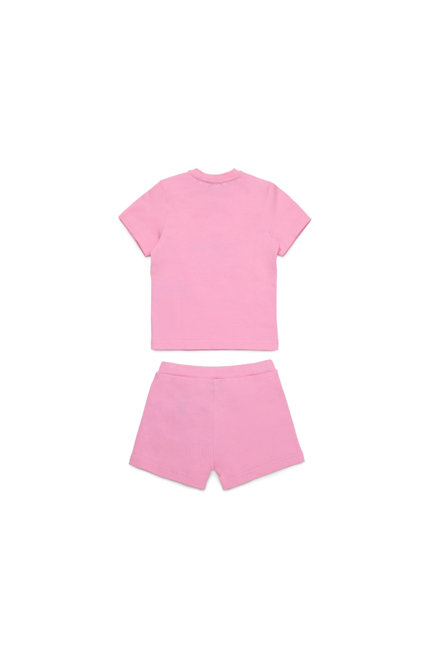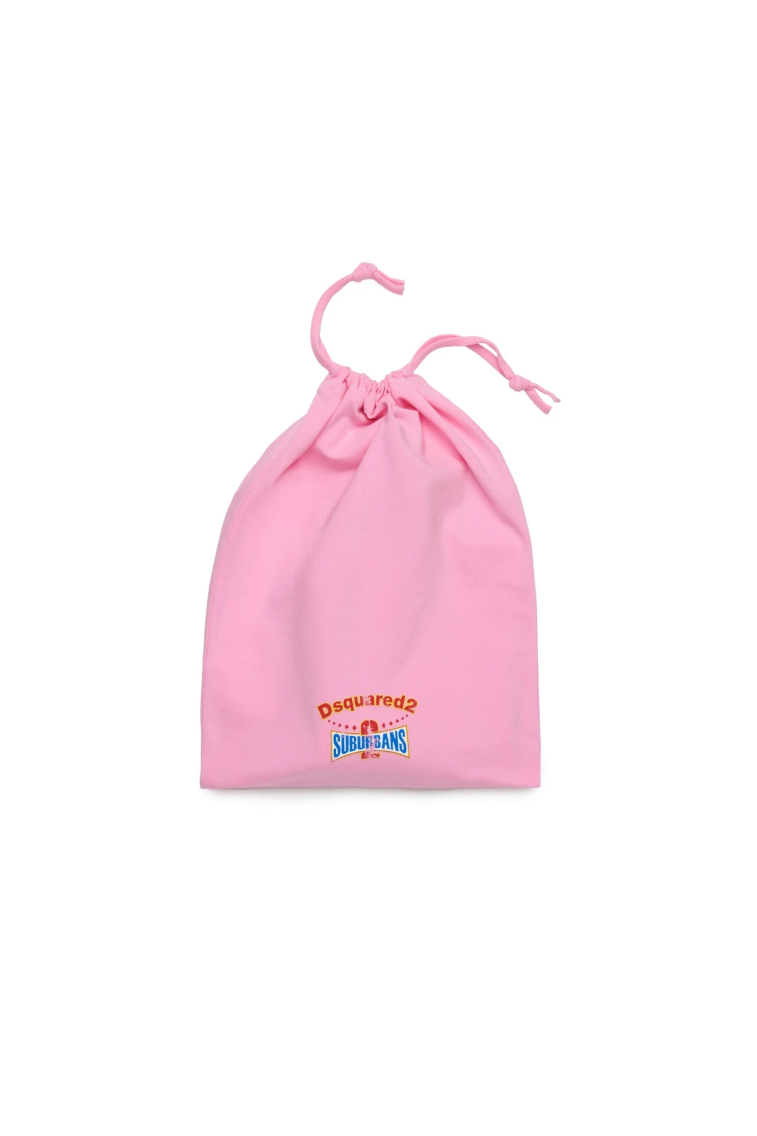 Stretch cotton jersey jumpsuit. Personalised with D2 Suburbans graphics. Short-sleeved crew-neck T-shirt with practical button closure at the shoulder. Drawstring shorts. The set comes inside a drawstring bag.