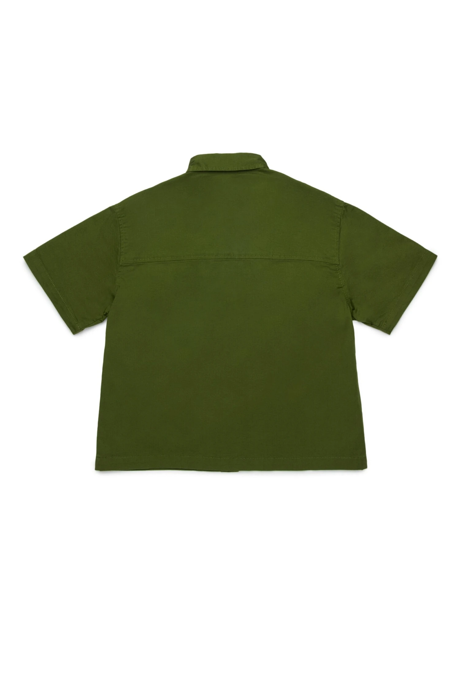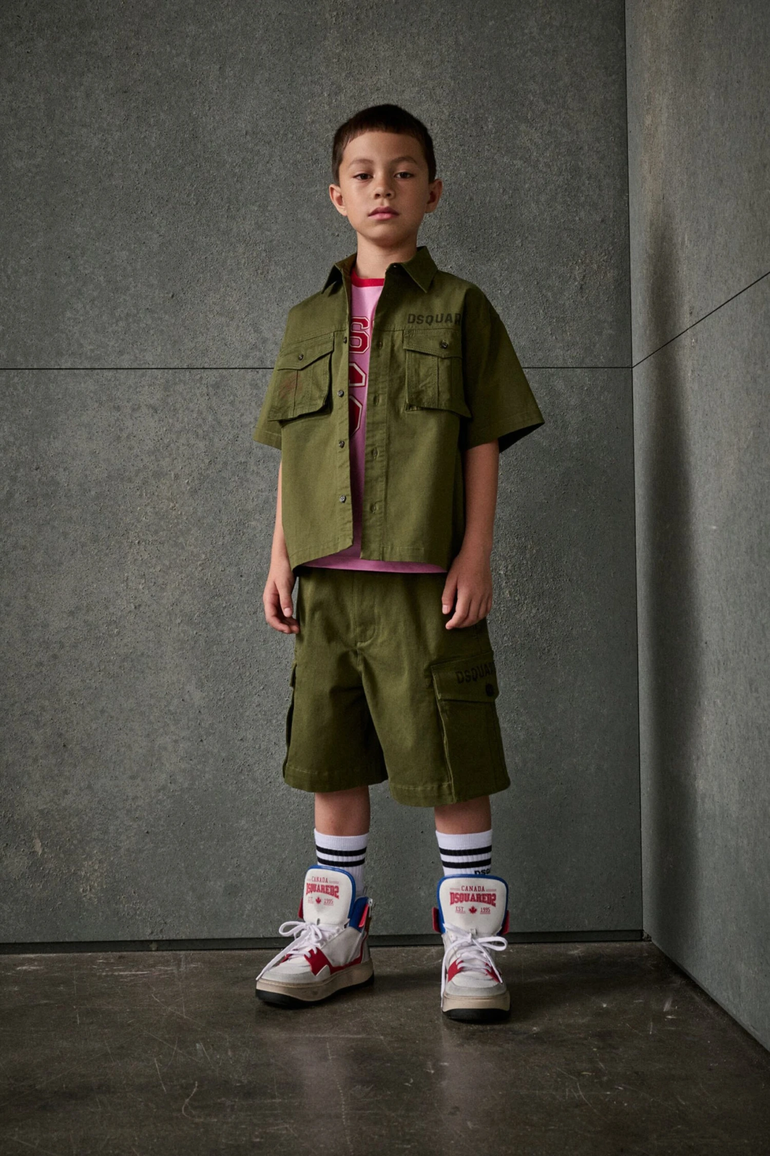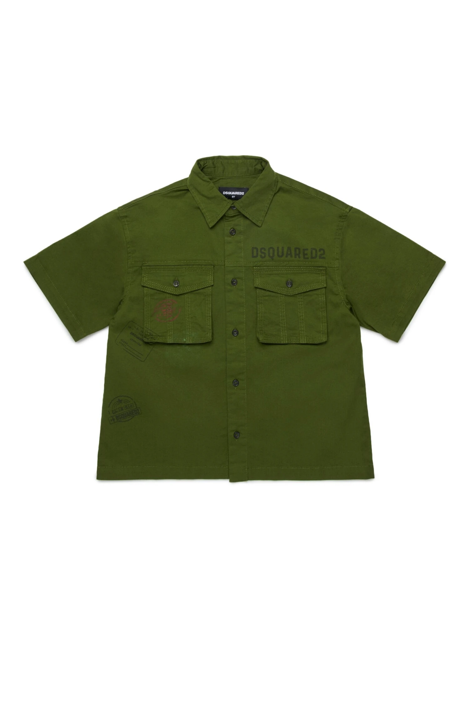 Stretch cotton gabardine short-sleeved shirt. Dsquared2 logo with Passport graphic on the front. Breast pockets. Front closure.