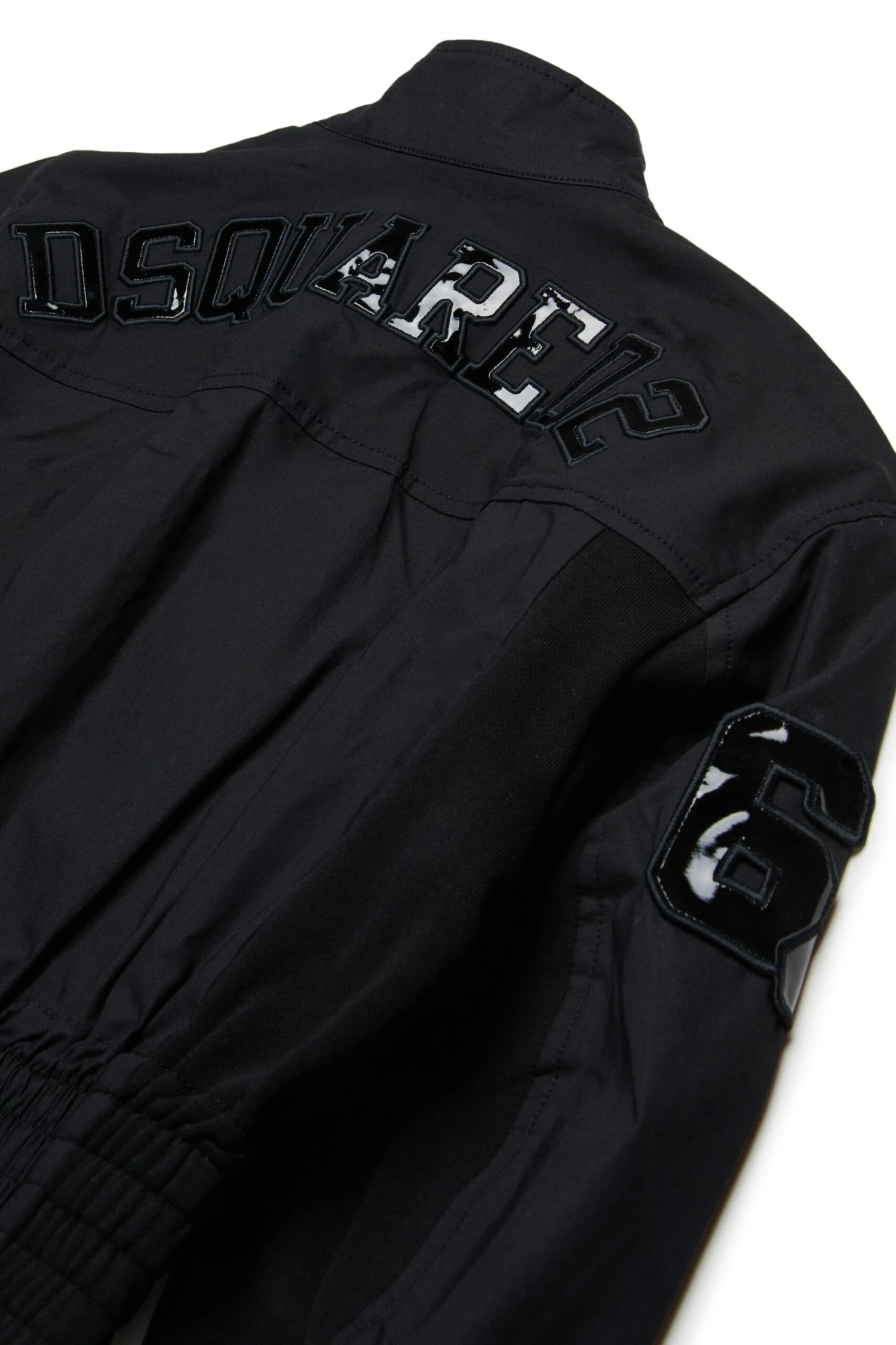 Basketball-inspired long-sleeved jacket. Made of technical cotton. Dsquared2 logo on the back and “64” detail on the sleeves. Front welt pockets. Elastic at hem. Front zip closure.