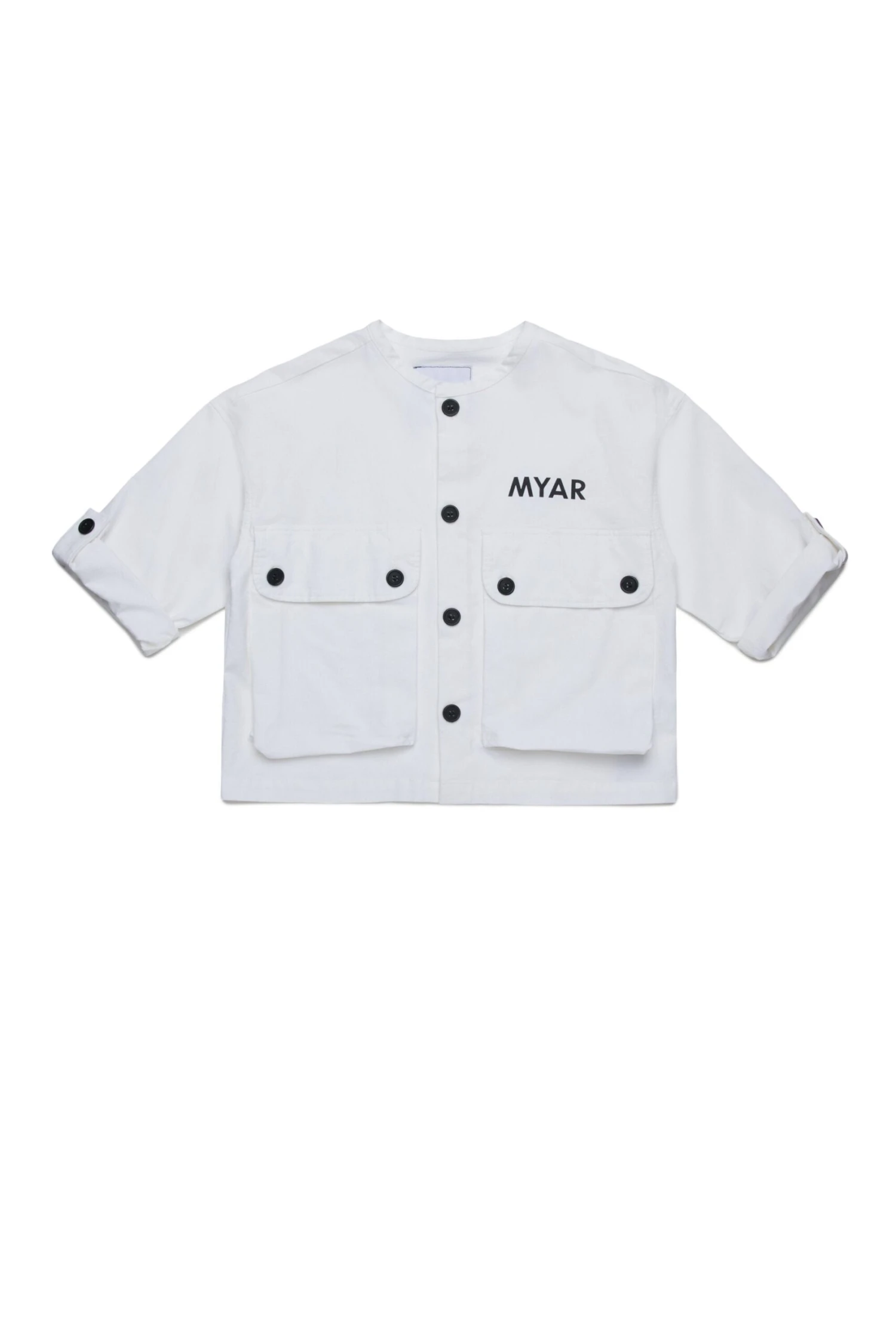 - The two voluminous pockets applied on the front of this shirt are inspired by the pockets of cargo trousers: functionality and capacity are always two distinctive characteristics of the military world!