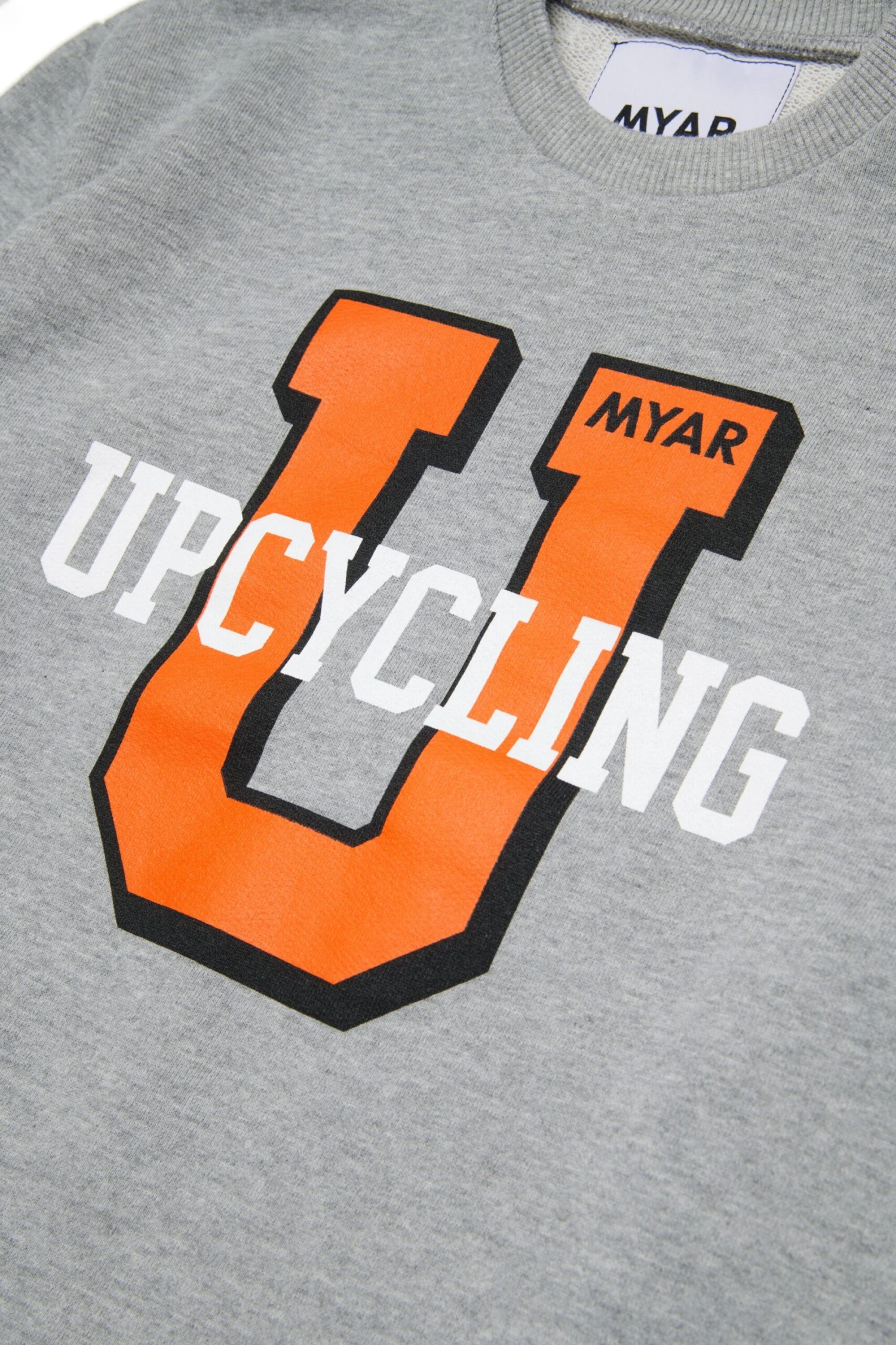 100% cotton long-sleeved T-shirt with varsity/upcycling print.