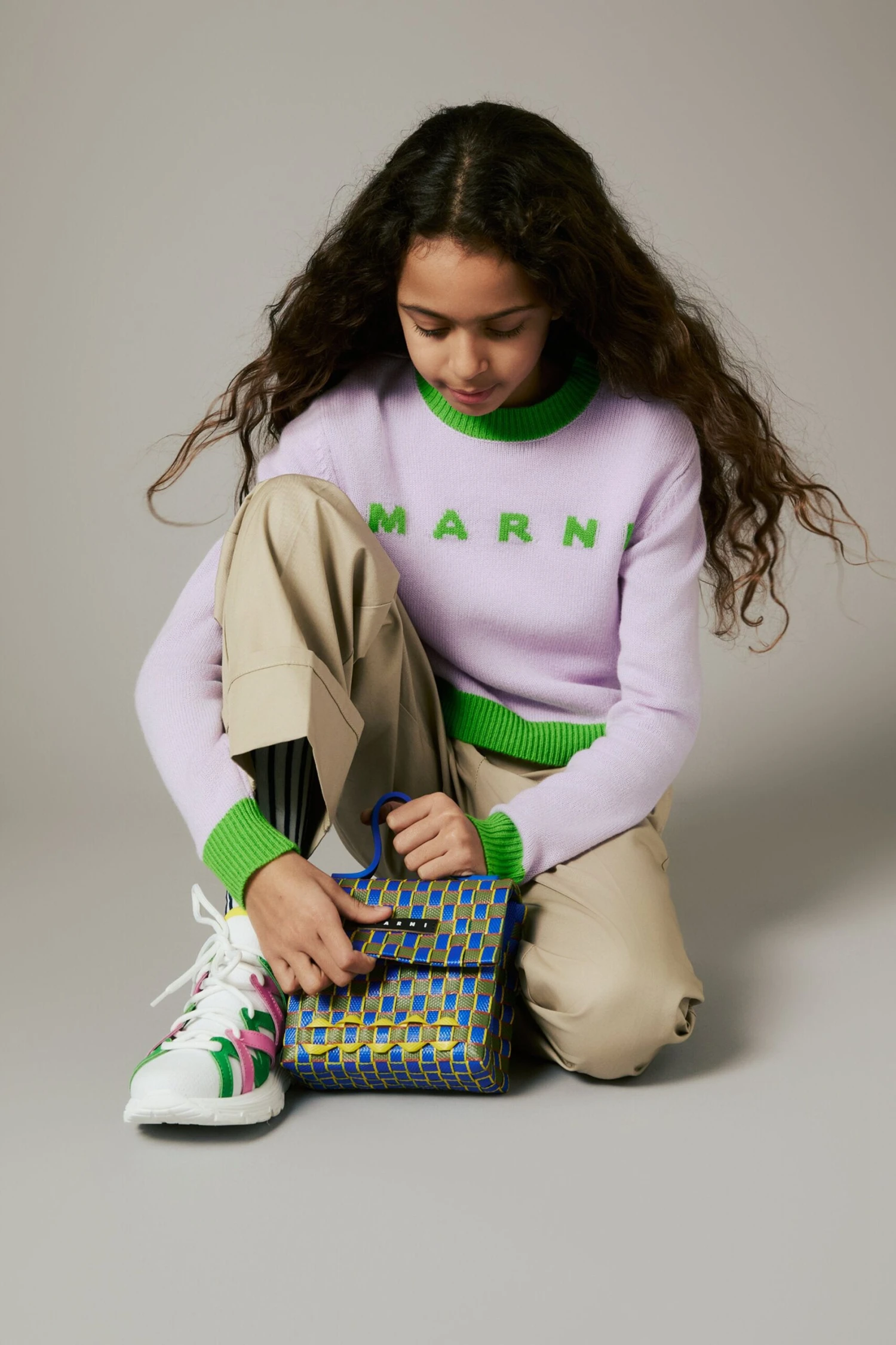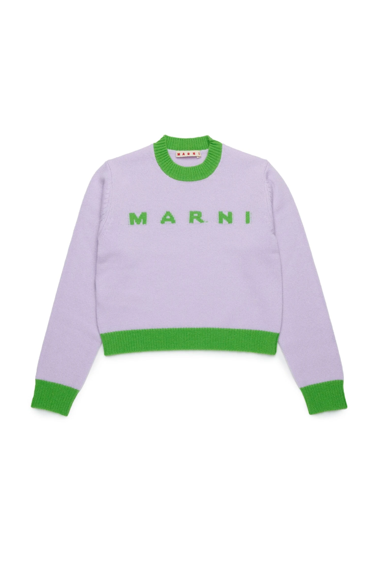 Crew-neck, long-sleeved, wool-blend cashmere sweater with ribbed colorblock cuffs, hem and collar. Features a contrasting Marni Institutional logo on the front.A stylish touch suitable for the most special occasions.
