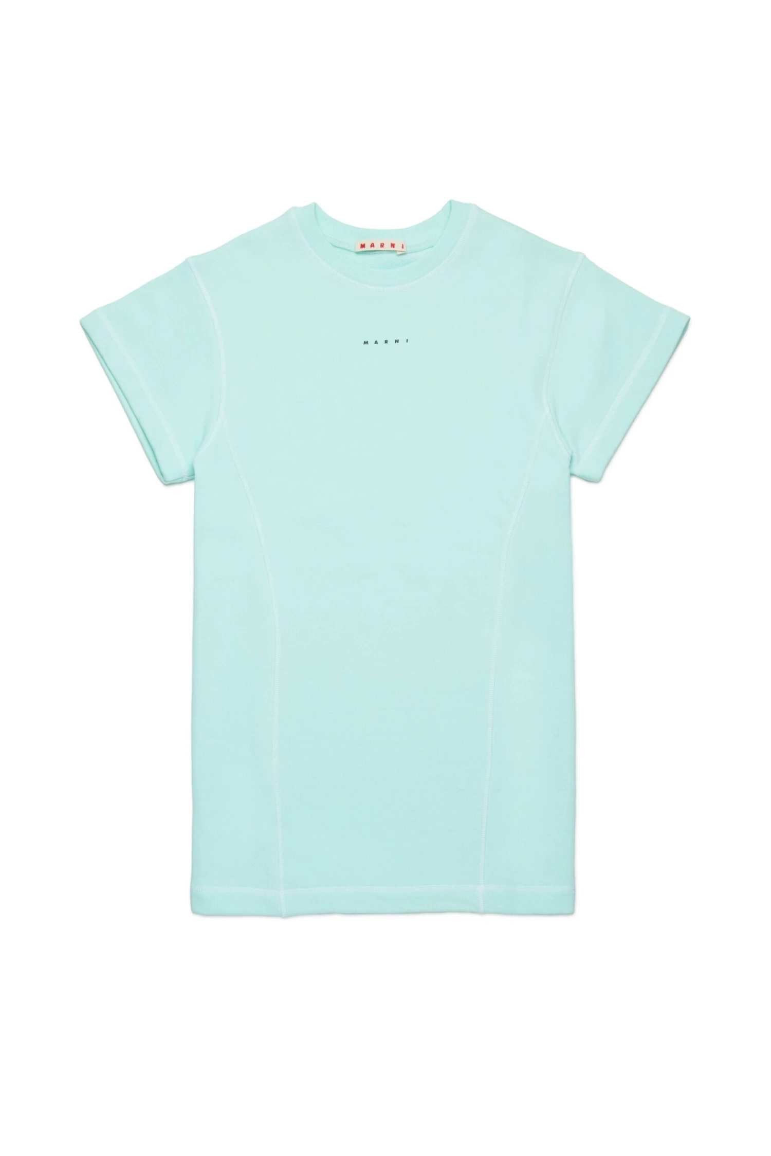 Crew-neck short-sleeved fleece dress. Institutional logo on the front. Overlock seams in color contrast stitching. Made of 100% cotton.