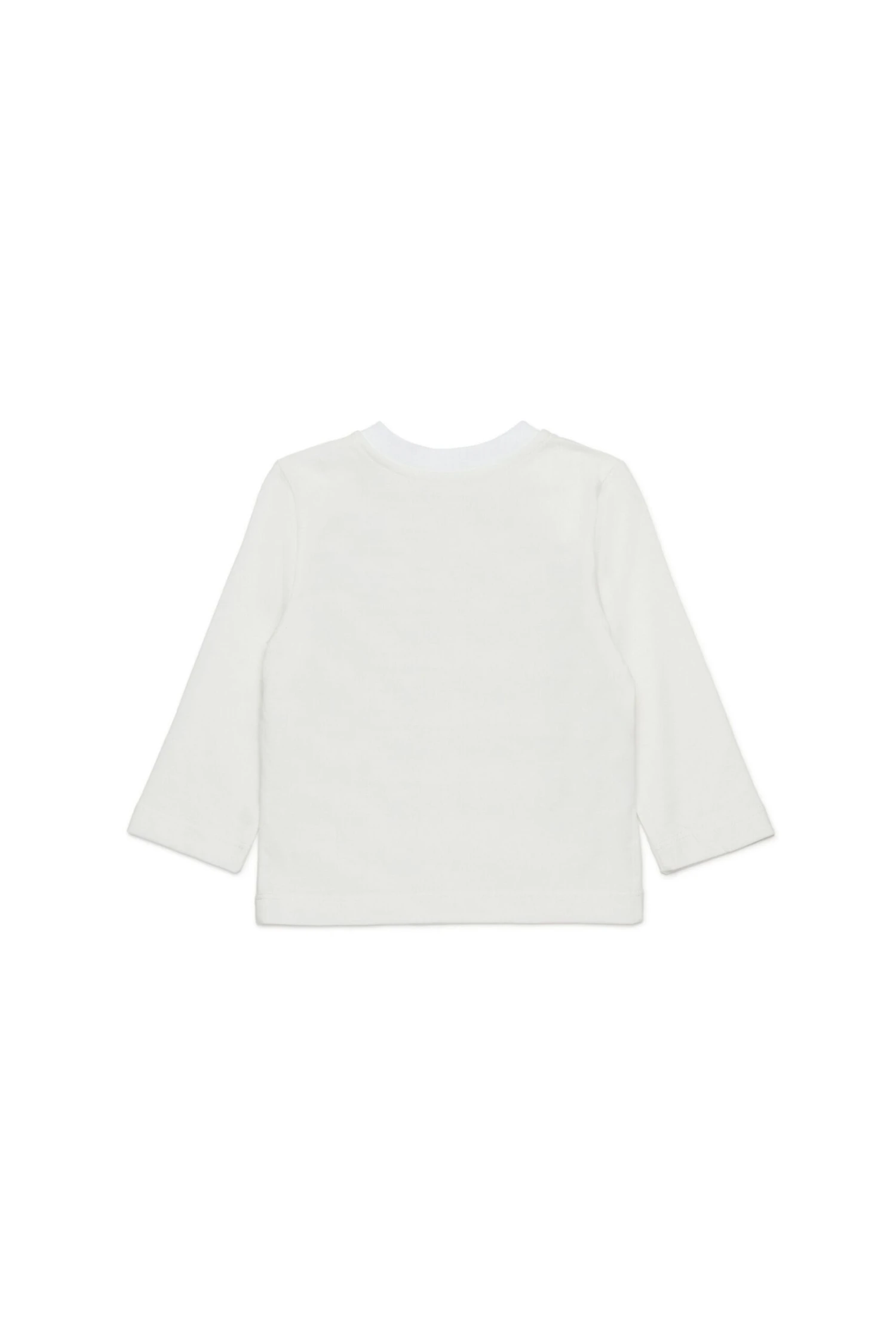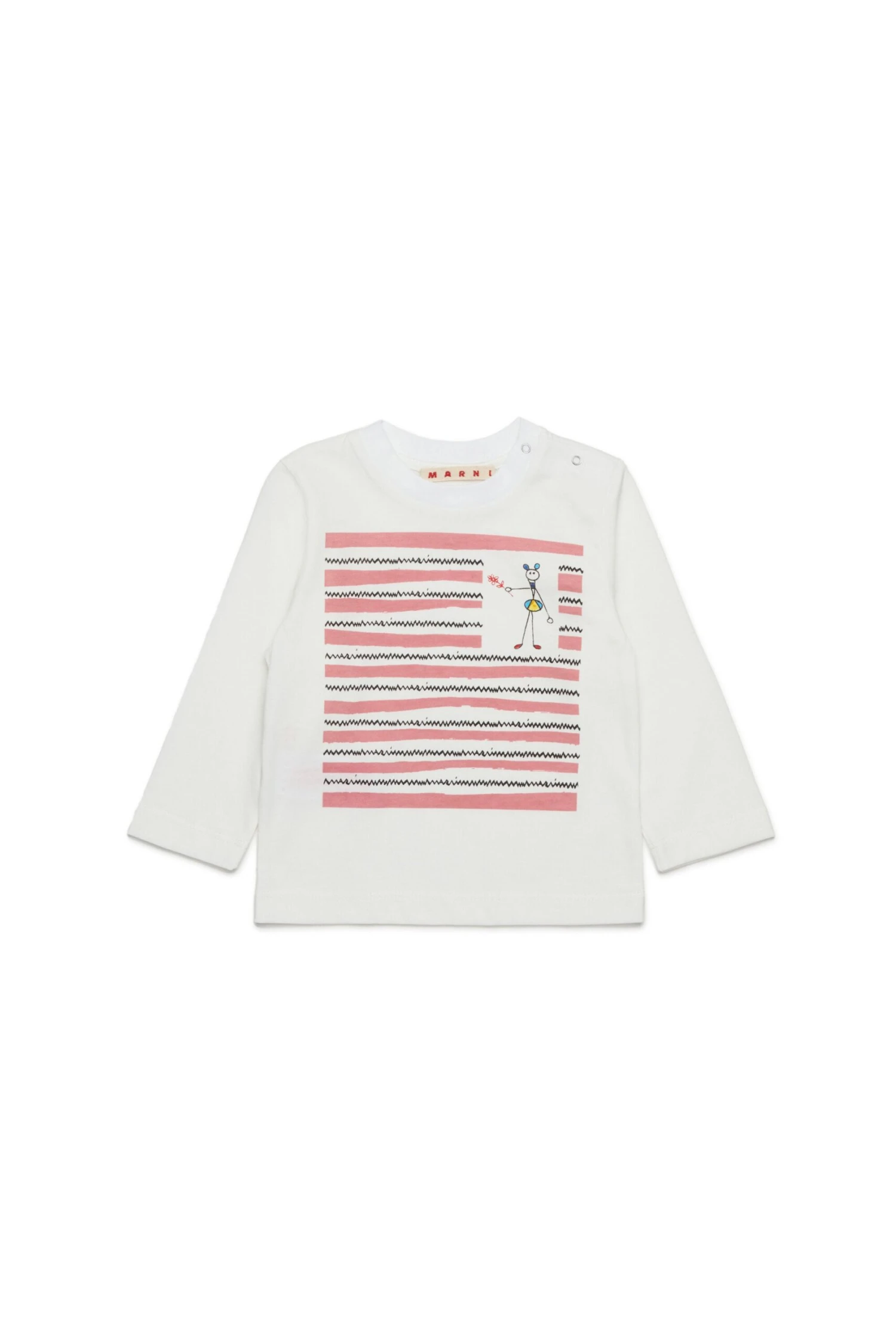 Soft cotton jersey long-sleeved T-shirt features a colorful and vibrant graphic on the front with cursive logo integrated into the print. A garment designed to add an original and creative touch to everyday looks.