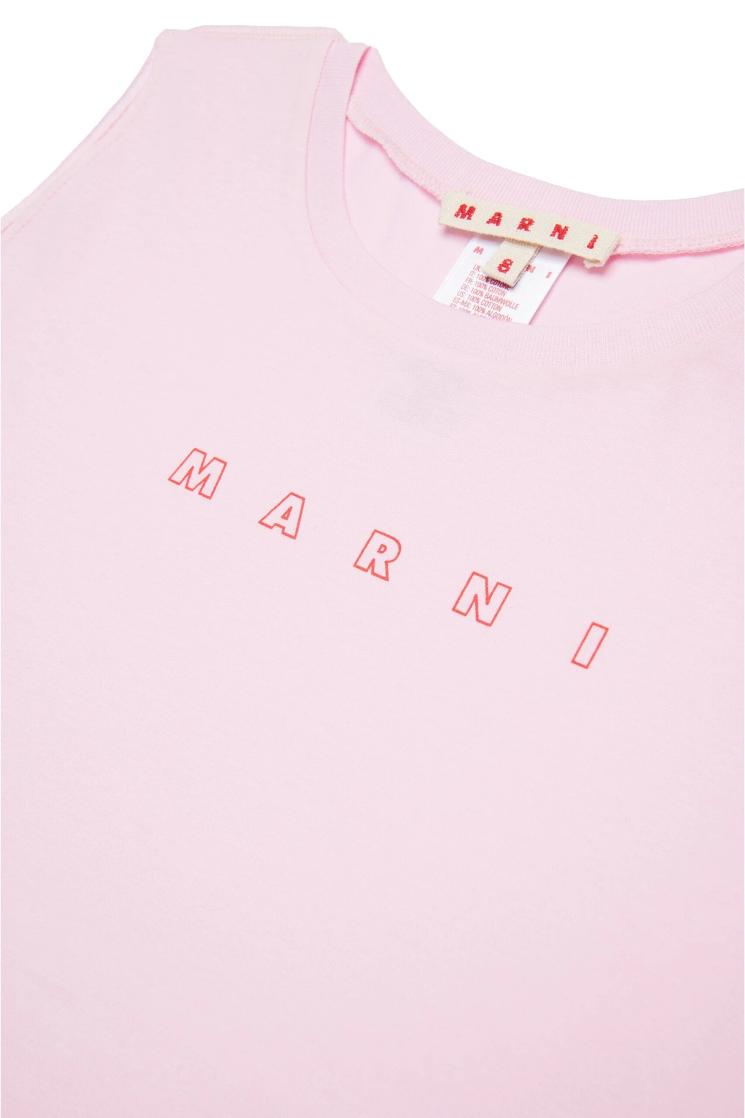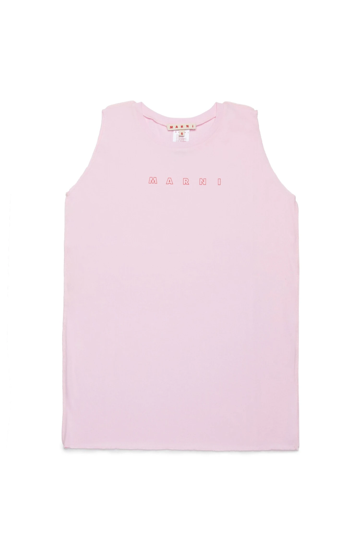 Crew-neck sleeveless cover-up dress in jersey. It features a contrasting color Marni Outline logo on the front. Made of 100% cotton.