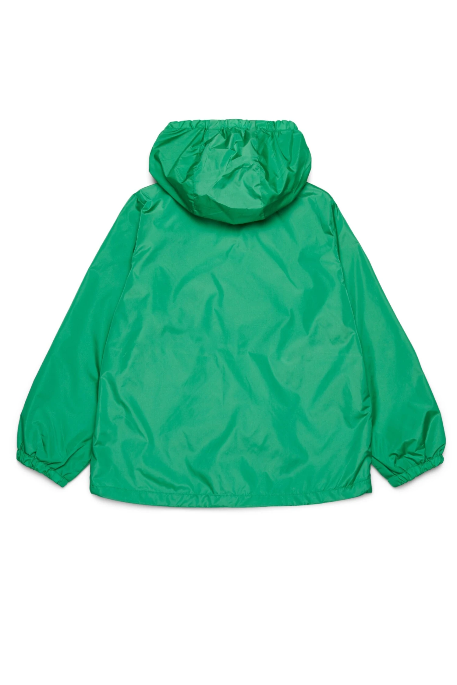Long-sleeved nylon windbreaker jacket. Marni Outline logo in contrasting color on the front. Fixed hood. Front welt pockets. Zip closure. Elastic on hood, cuffs and hem. Lined inside.