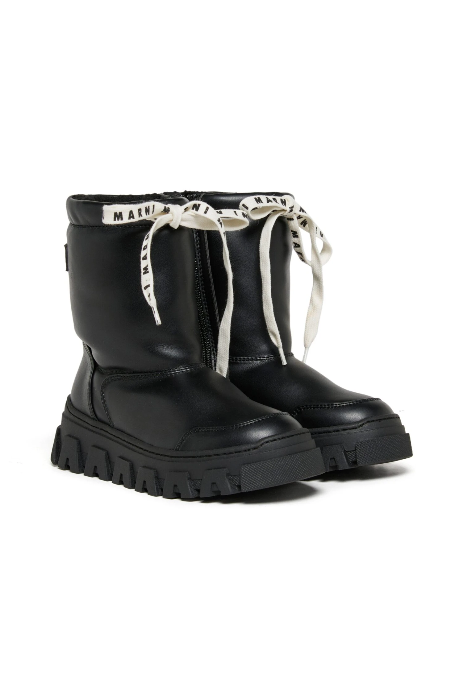 Padded snow boots made of coated fabric with soft teddy lining. Designed to provide warmth and comfort in the colder months, they are ideal for tackling winter in style.
