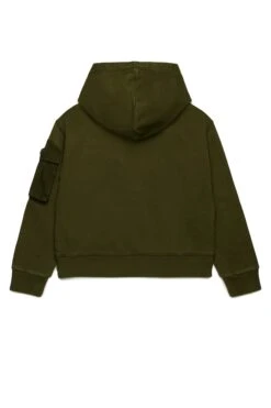 Two-tone long-sleeved sweatshirt. Institutional logo in contrasting color on the heart side. Front pockets. Front zip closure. Ribbed collar, cuffs and bottom construction. Made of 100% cotton.