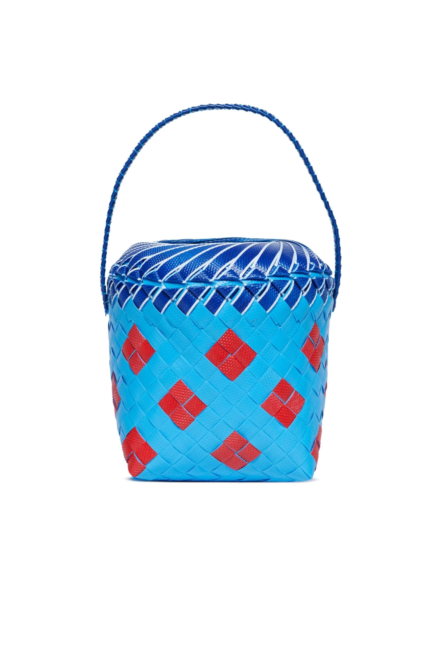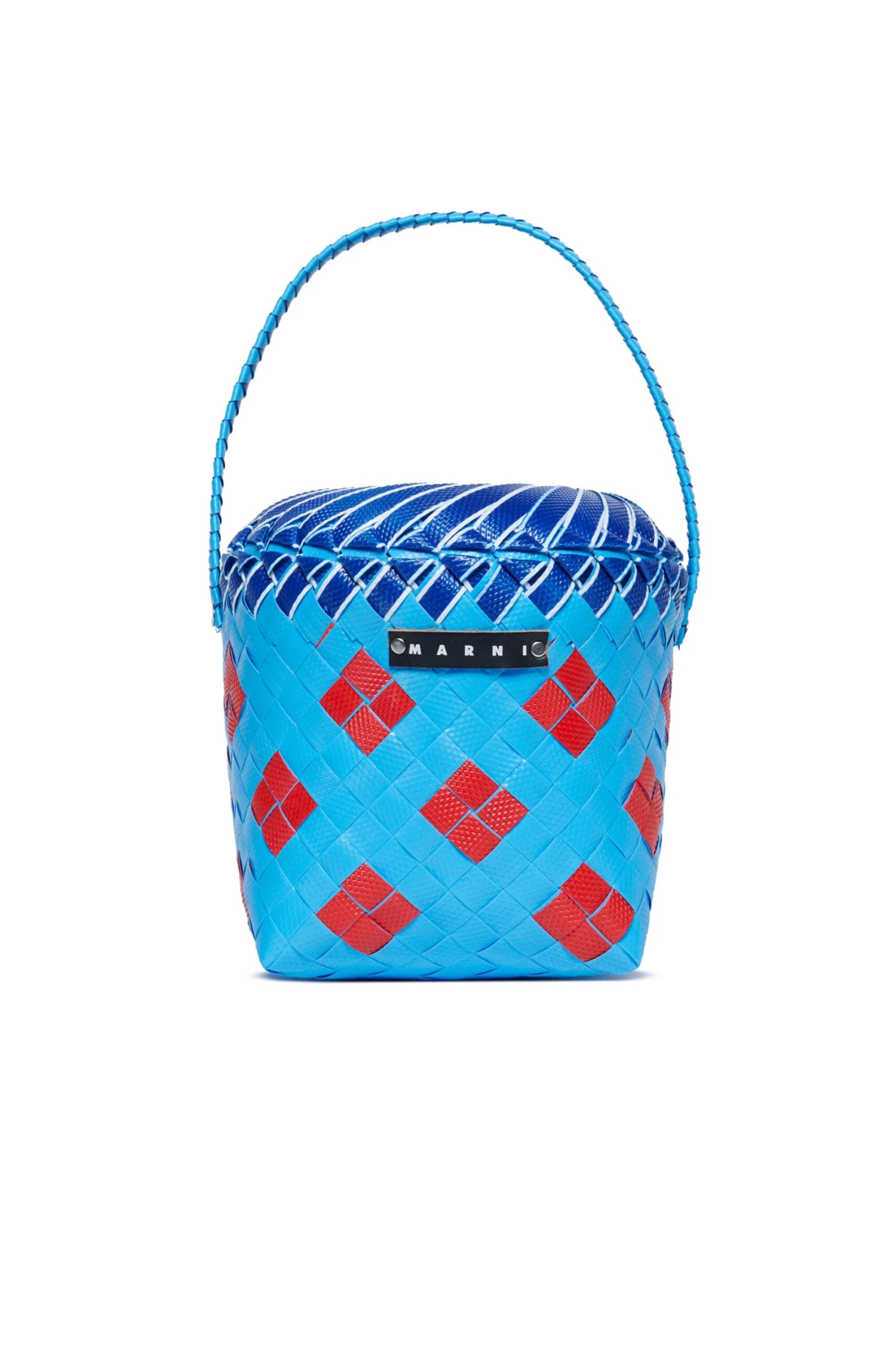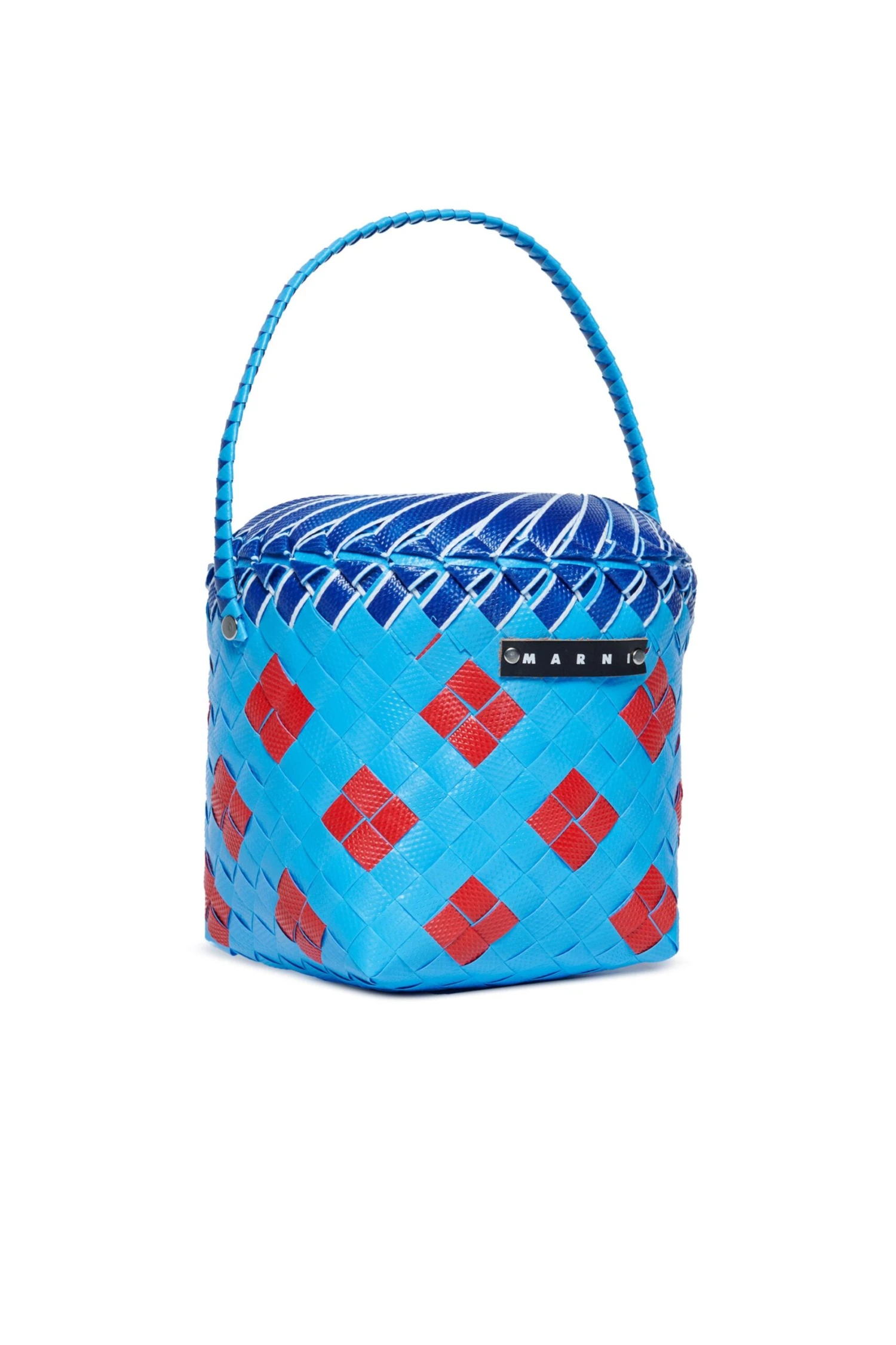 Beach Party bag with handle. The item features a woven body on which the Marni institutional logo is applied. Carried by hand. Measurements: 18 cm high, 17 cm wide, 16 cm deep. Handle drop: 12 cm.
