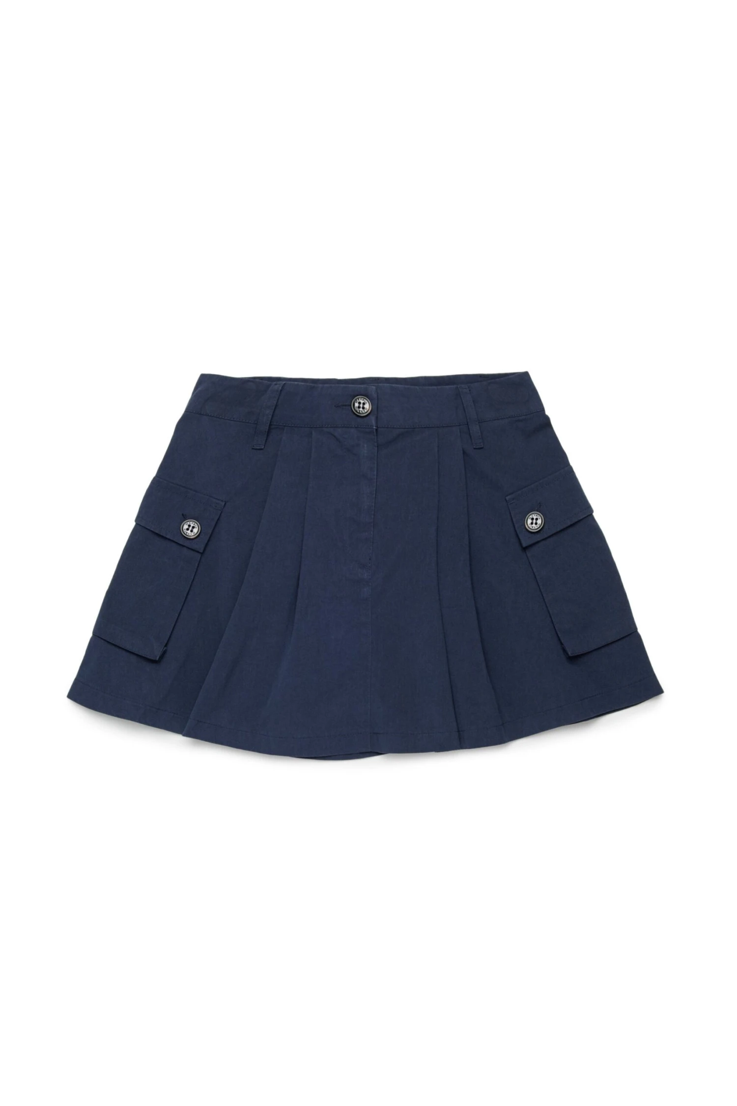 Cargo-style mini skirt in cotton blend drill. Tone-on-tone embroidered MAX&Co. logo on one of the side pockets. Front and back pockets that give volume to the garment. Waist and pocket closures with logoed buttons.