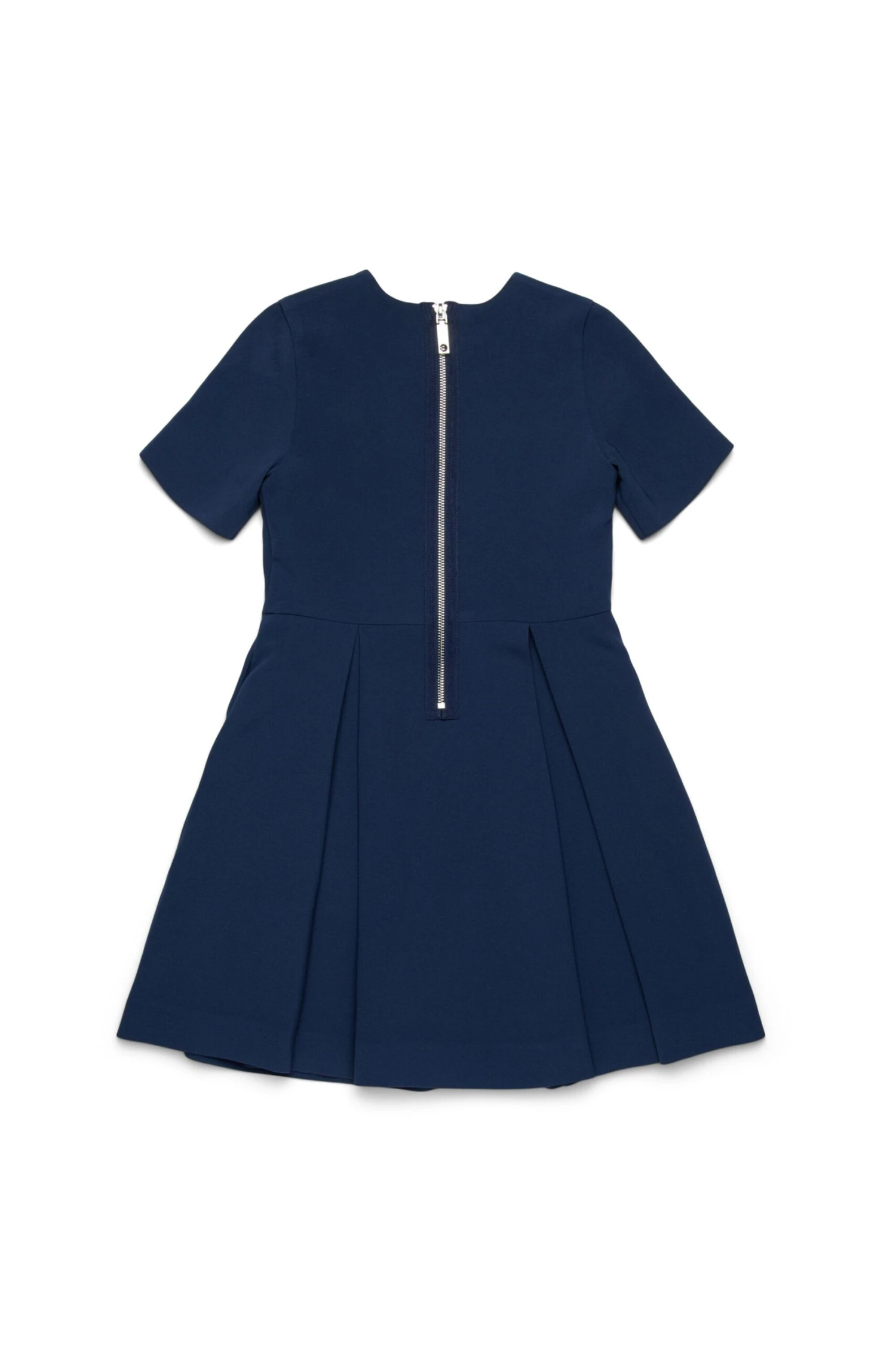 Corolla midi dress crew-neck with short-sleeved hemline. Back zip closure. Internally lined. A perfect garment for ceremonies and special occasions.