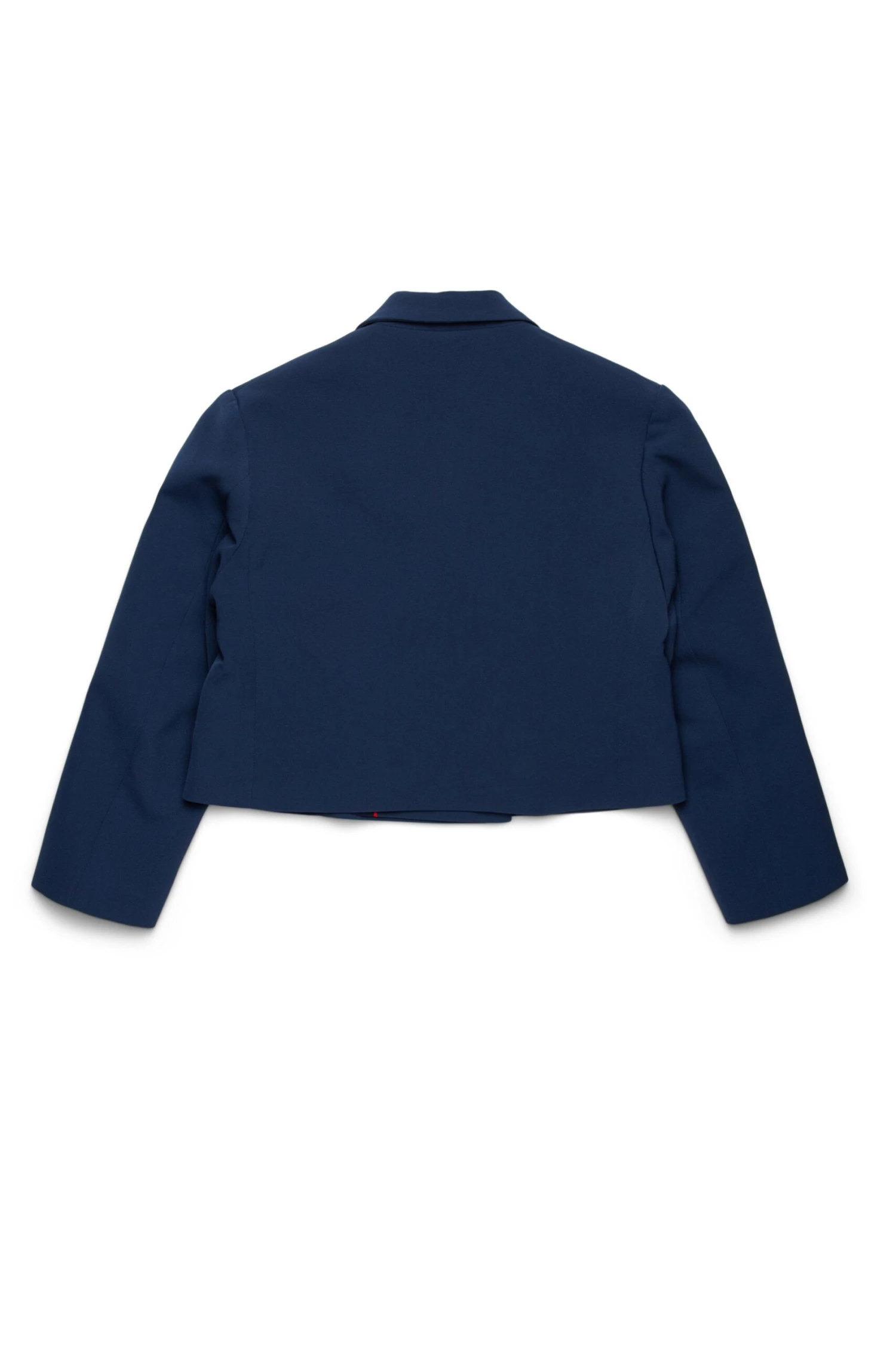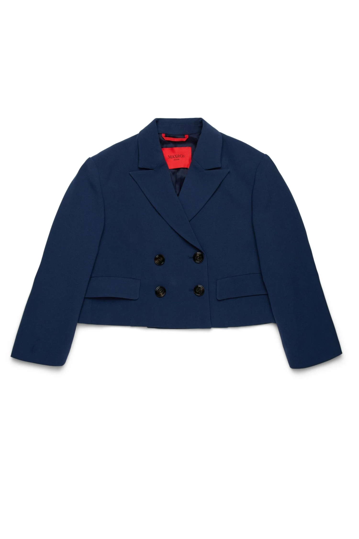 Long-sleeved cropped blazer jacket. Double-breasted front closure with logo buttons. Front flap pockets. Lined inside with contrasting red piping. A perfect garment for ceremonies and special occasions.