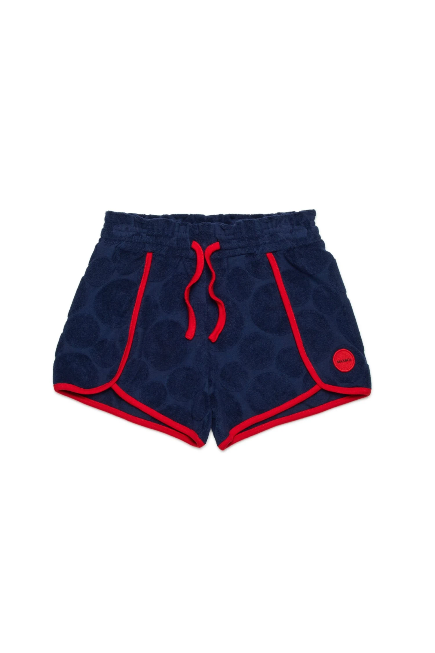 Cotton blend terry short pants. Drawstring waist. Characterised by an all-over print with embossed polka dots in two different sizes. Red Dot patch branded with MAX&Co. logo applied to the front. Contrasting colour piping. Comfortable and ideal for everyday occasions and sport.