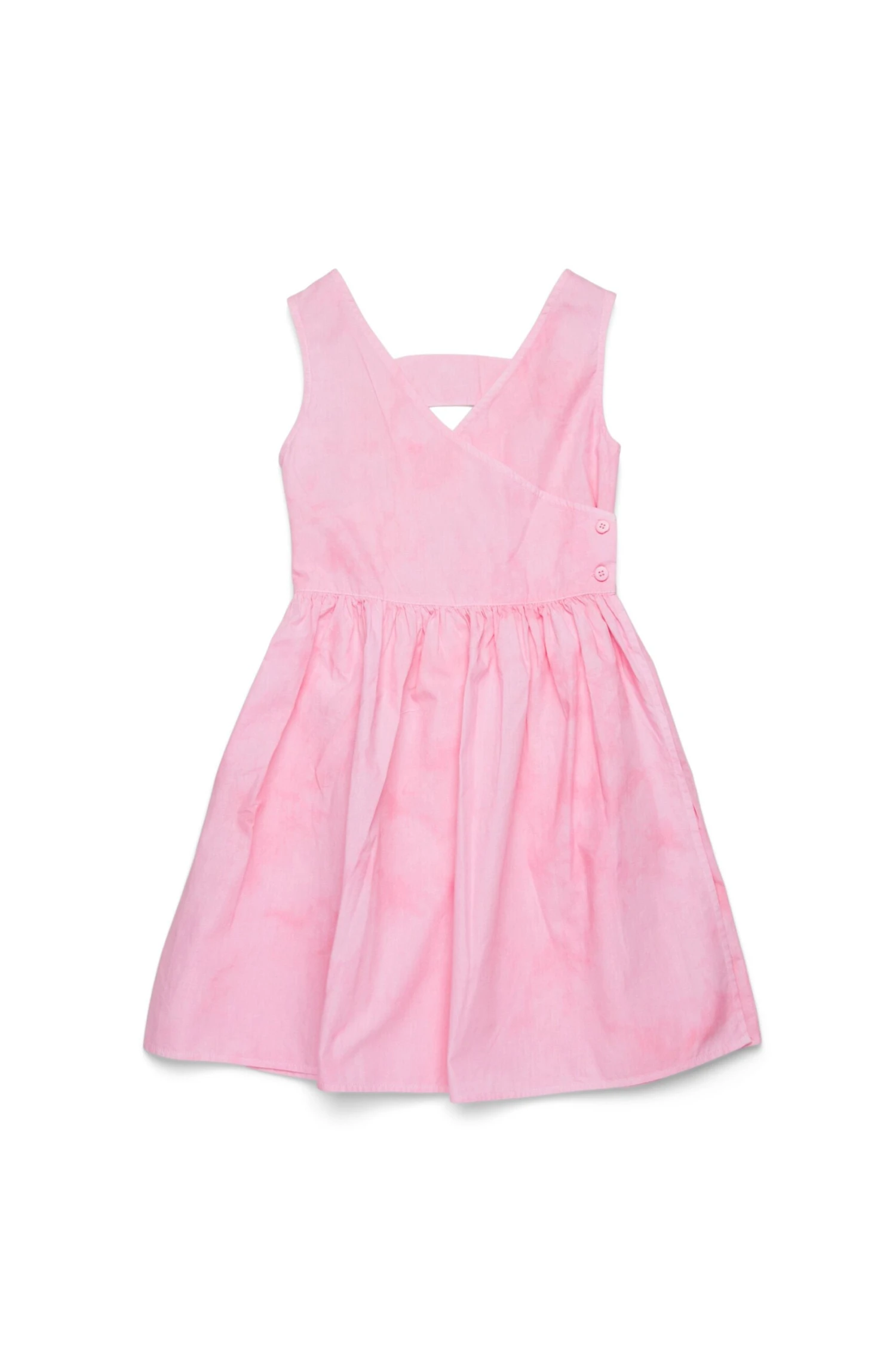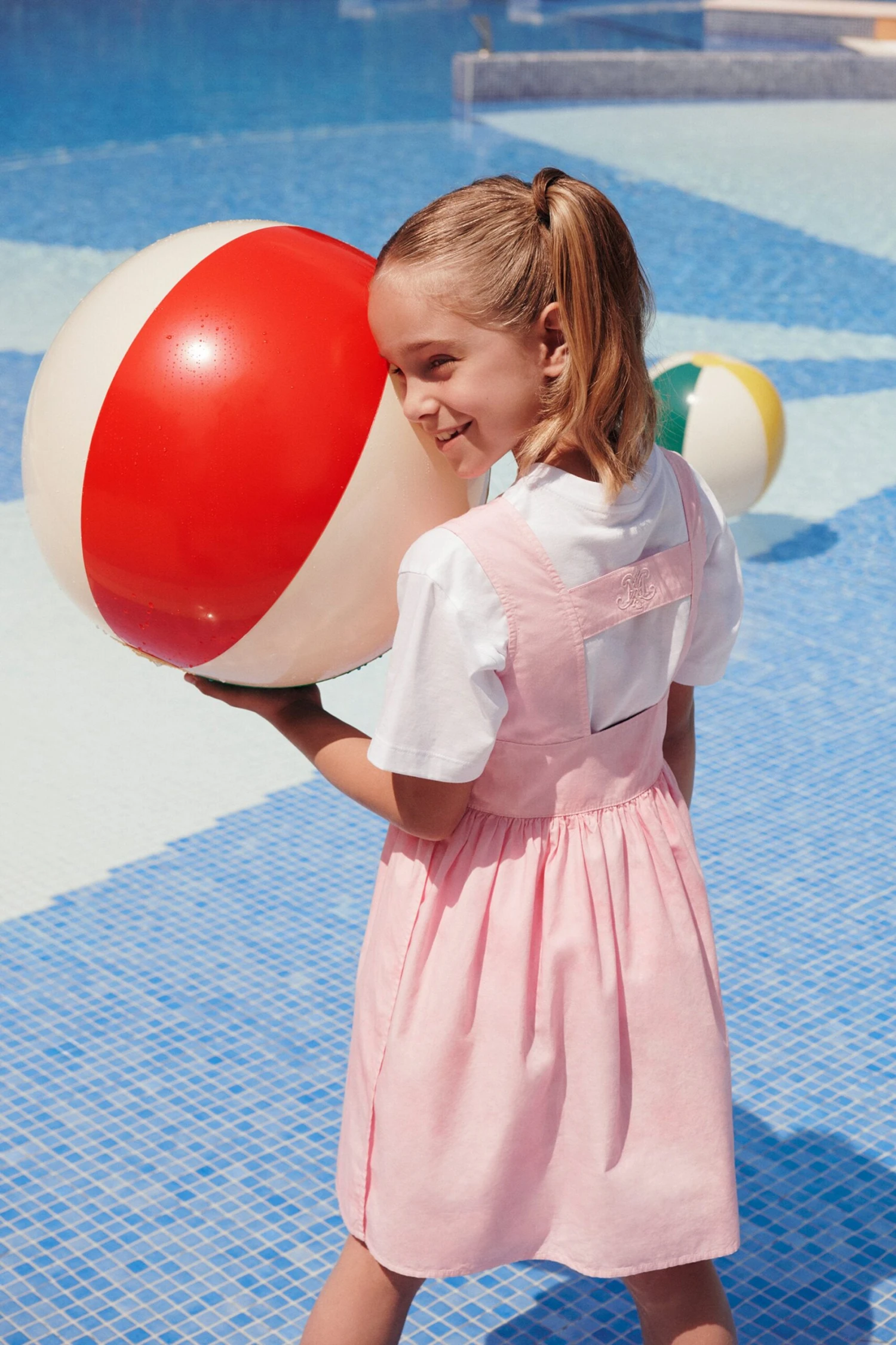 Sleeveless 100% cotton poplin midi dress. Hand-dyed watercolour effect. Tone-on-tone embroidered monogram crest on the back band.