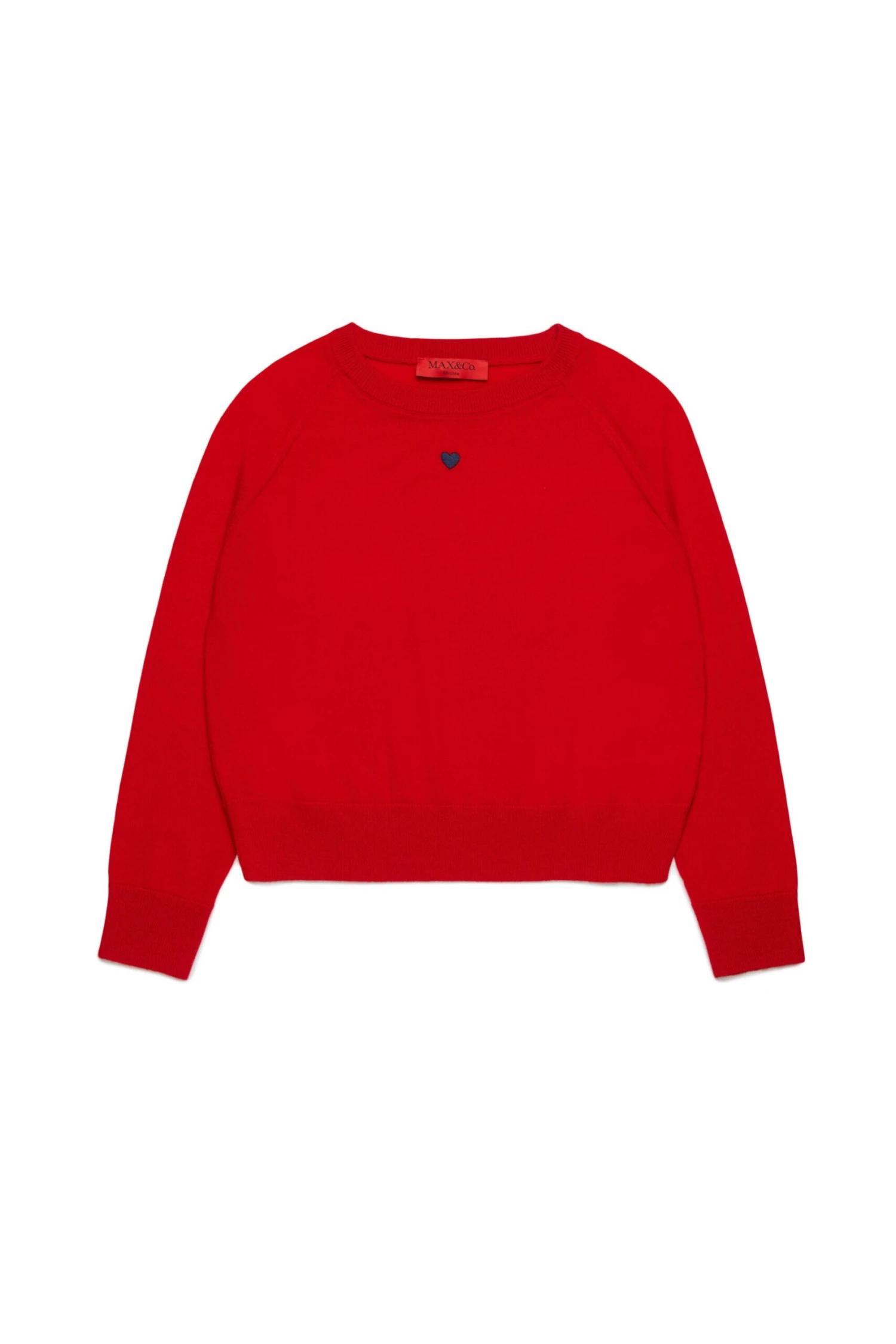 Crew-neck pullover with raglan sleeves. Made of 100% pure wool. Regular fit. Contrast color heart embroidery on front. Rib construction on bottom hem, cuffs and neck. A perfect garment to wear every day without compromising on style.