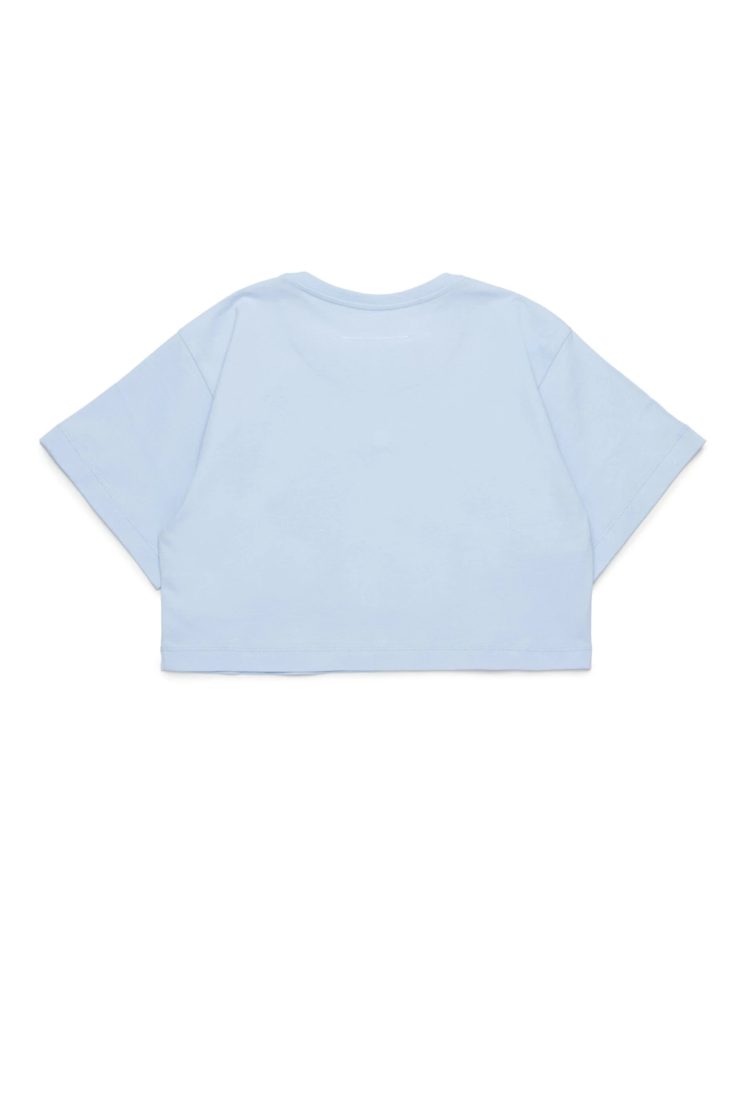 Cropped crew-neck T-shirt in short-sleeved jersey. Institutional logo in color tone on the front. Iconic seam on the back. Made of 100% cotton.