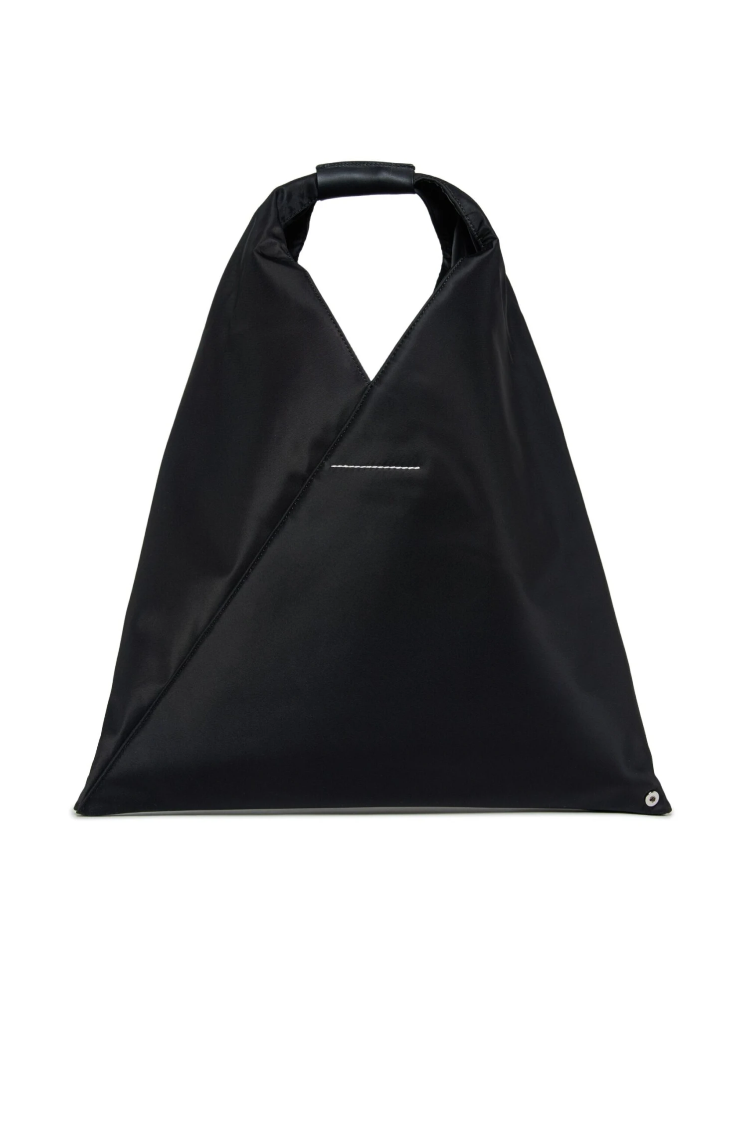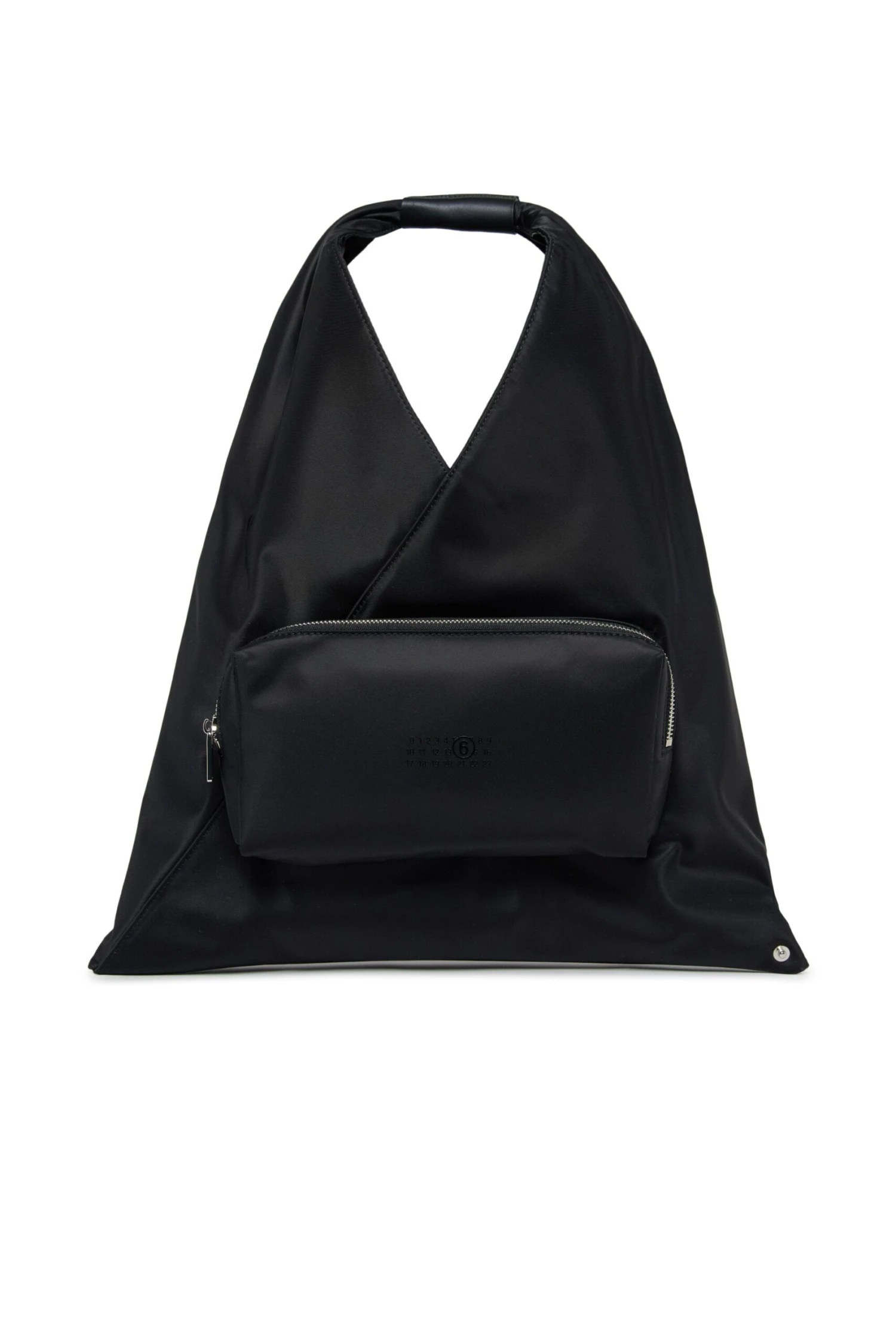 Japanese Bag with Pocket. Featuring a triangular silhouette. Front pocket with Numeric logo in color tone. Coated fabric handle. Button closure. Iconic seam at the back. A reinterpretation of MM6’s most emblematic accessory, taken from the adult collection.Measurements: 31.5 cm high, 44 cm long. Handle drop: 20 cm.