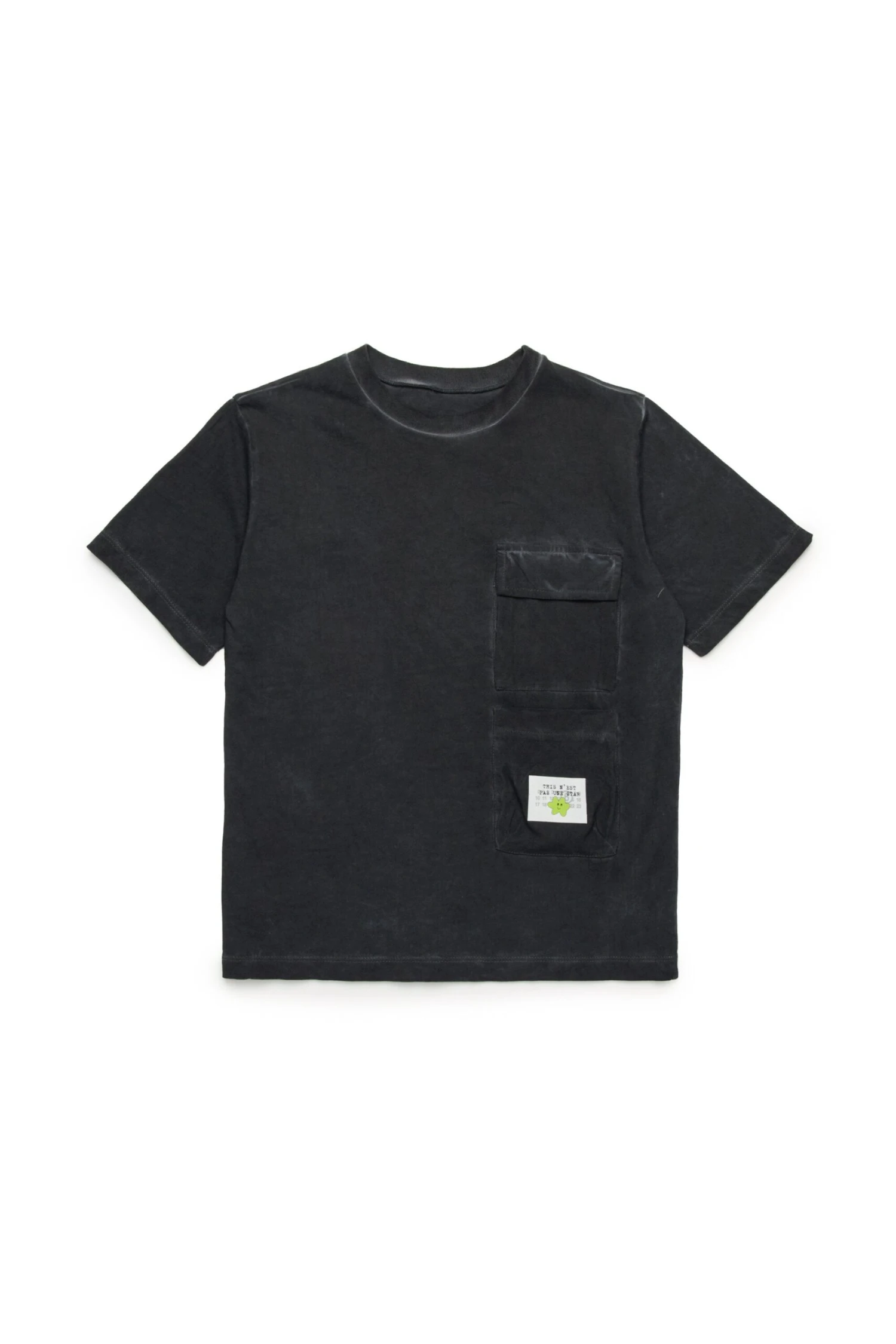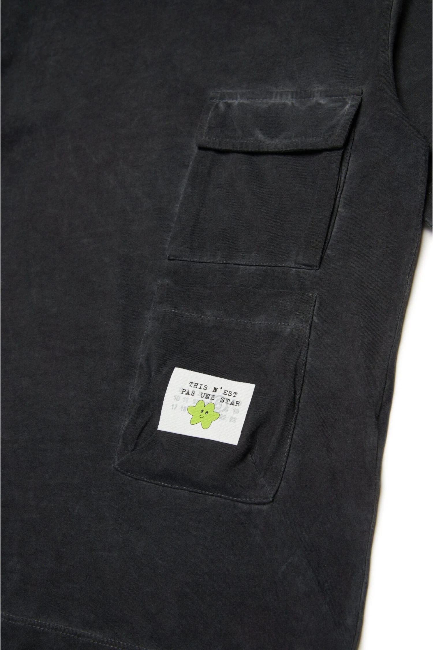Short-sleeved crew-neck T-shirt in jersey. Garment dyed to give a faded effect. Label with Happy Star graphic applied to one of the pockets on the front. Iconic seam on the back. Made of 100% cotton. Any differences between the photographed garment and the one you will receive are a symbol of the fine workmanship, quality and uniqueness of the product.