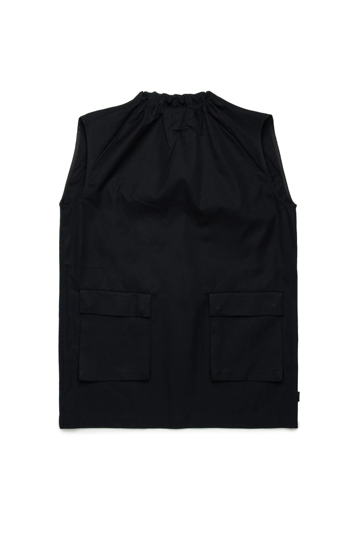 Sleeveless minidress in twill. Gathered neck. Button-fastening pockets on the front. Numeric logo flag on the side. Iconic seam at back. Made of 100% cotton.