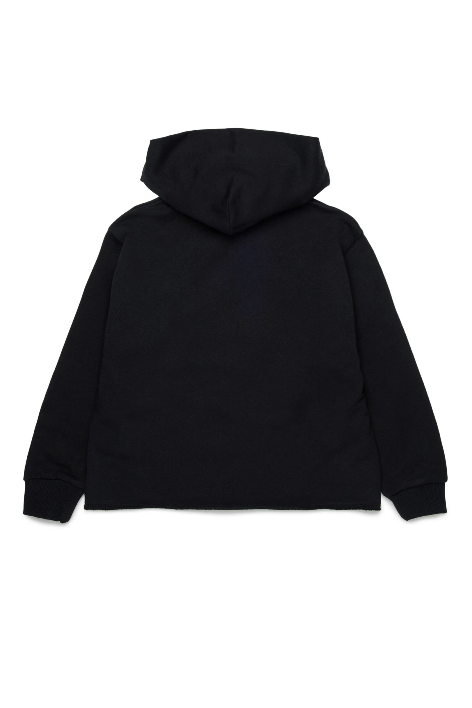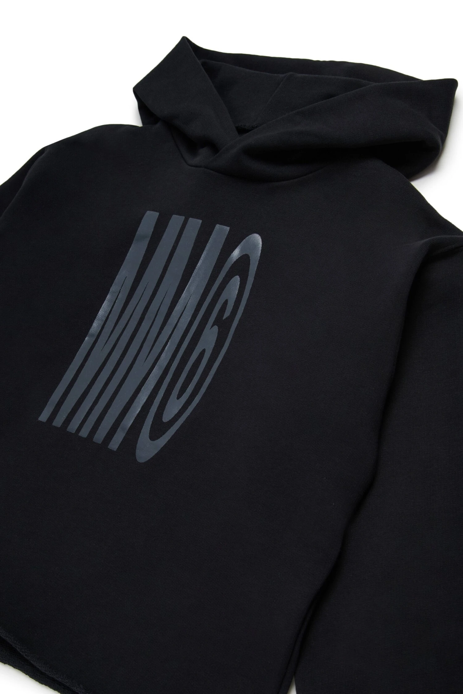 Long-sleeved hooded sweatshirt. Institutional logo printed in color tone on the front. Raw cut hem at bottom. Iconic seam on the back. Ribbed cuffs construction.