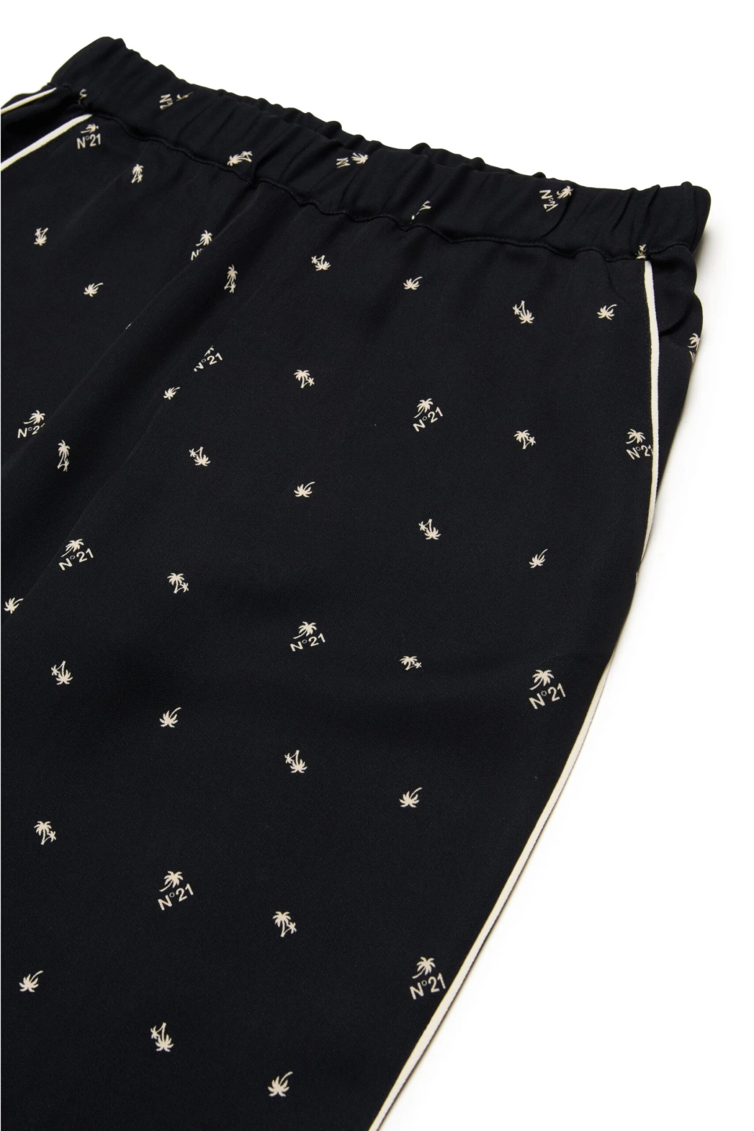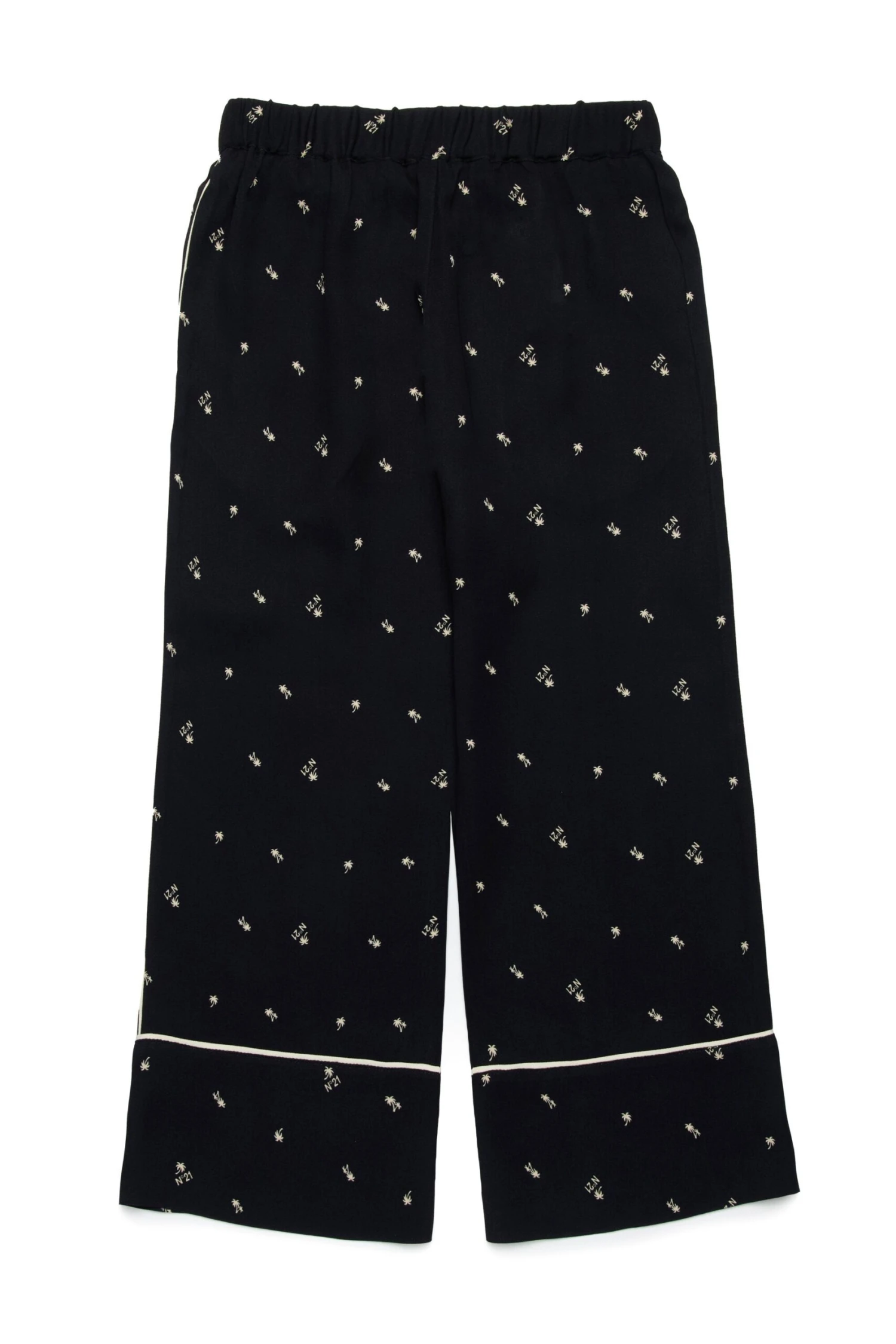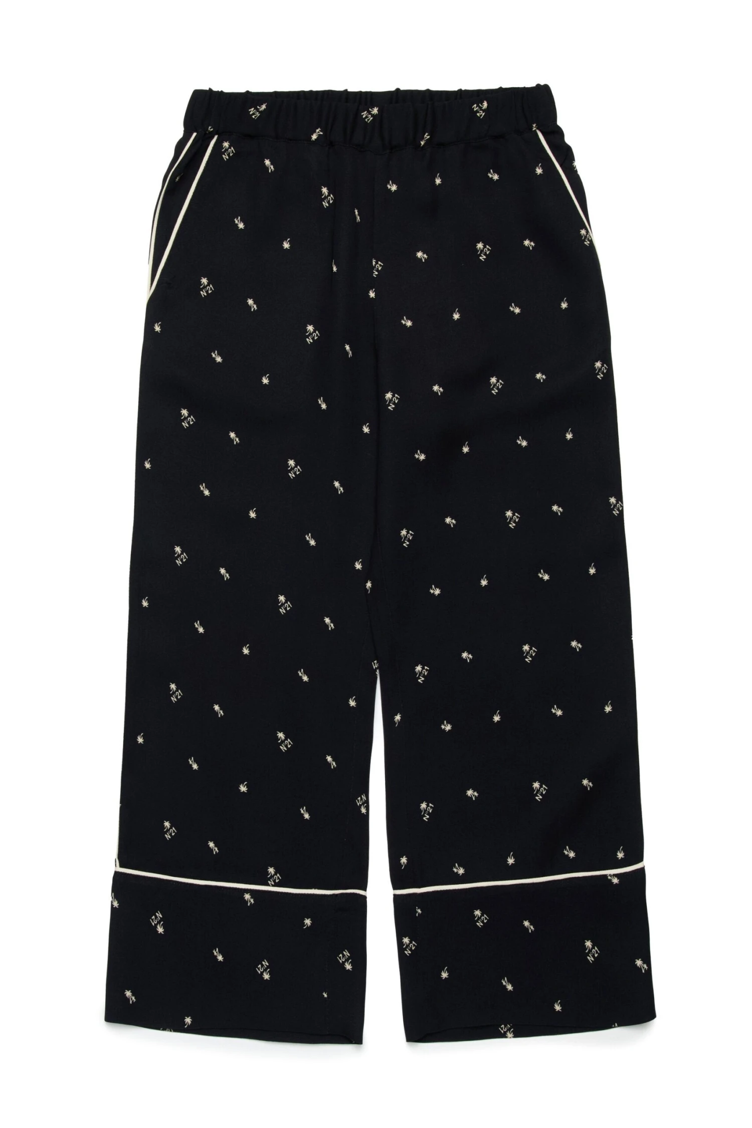 Wide-leg pants in viscose crepe with all-over print Palms. Elasticated waistband. Contrasting color piping. Flat front pockets.