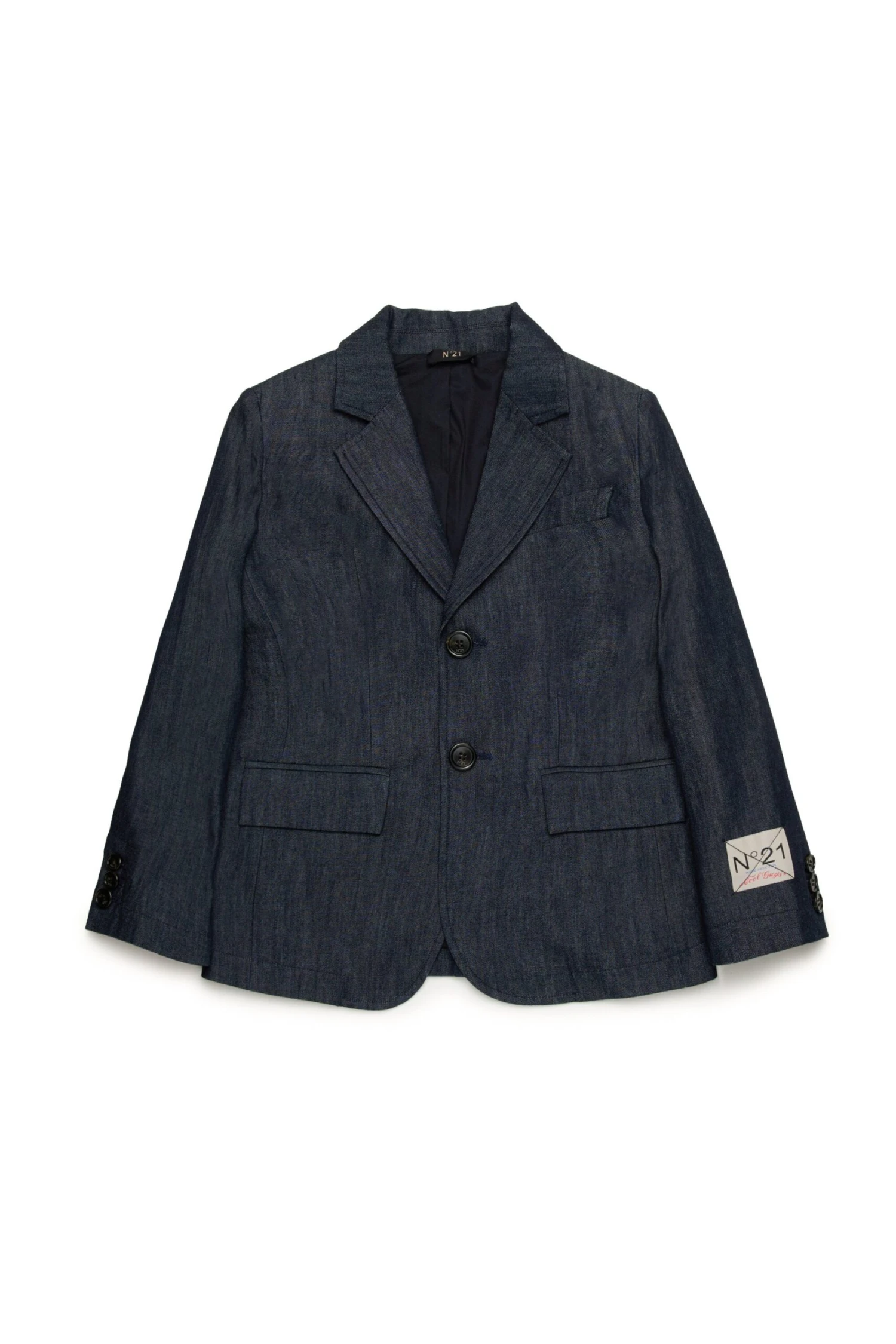 Single-breasted blazer jacket in chambray denim. Slim fit. Front pocket decoration. Heart-side pocket. Label N°21 on the sleeves. Lined inside. Made of 100% cotton.