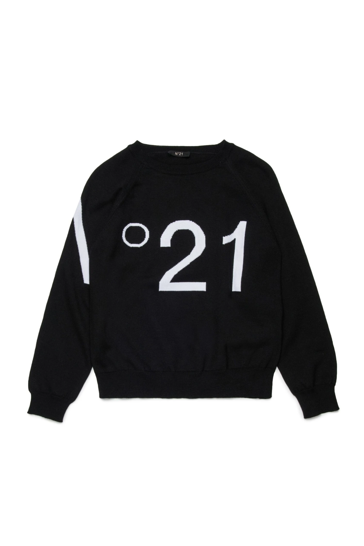 Long-sleeved crew-neck pullover in knit. Contrasting color N°21 maxi logo on the front and sleeves. Ribbed construction on crew-neck, cuffs and hem. Made of 100% cotton.