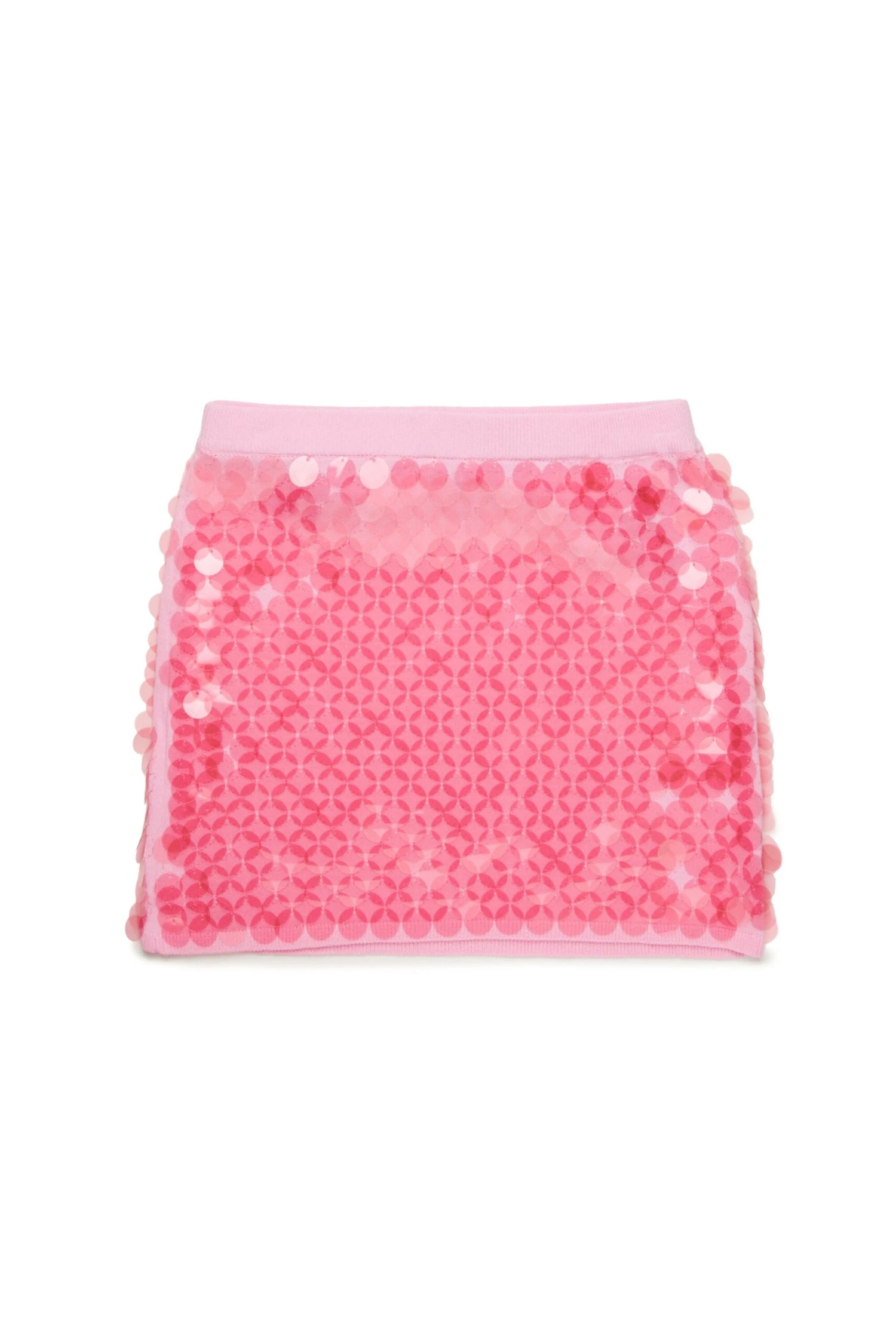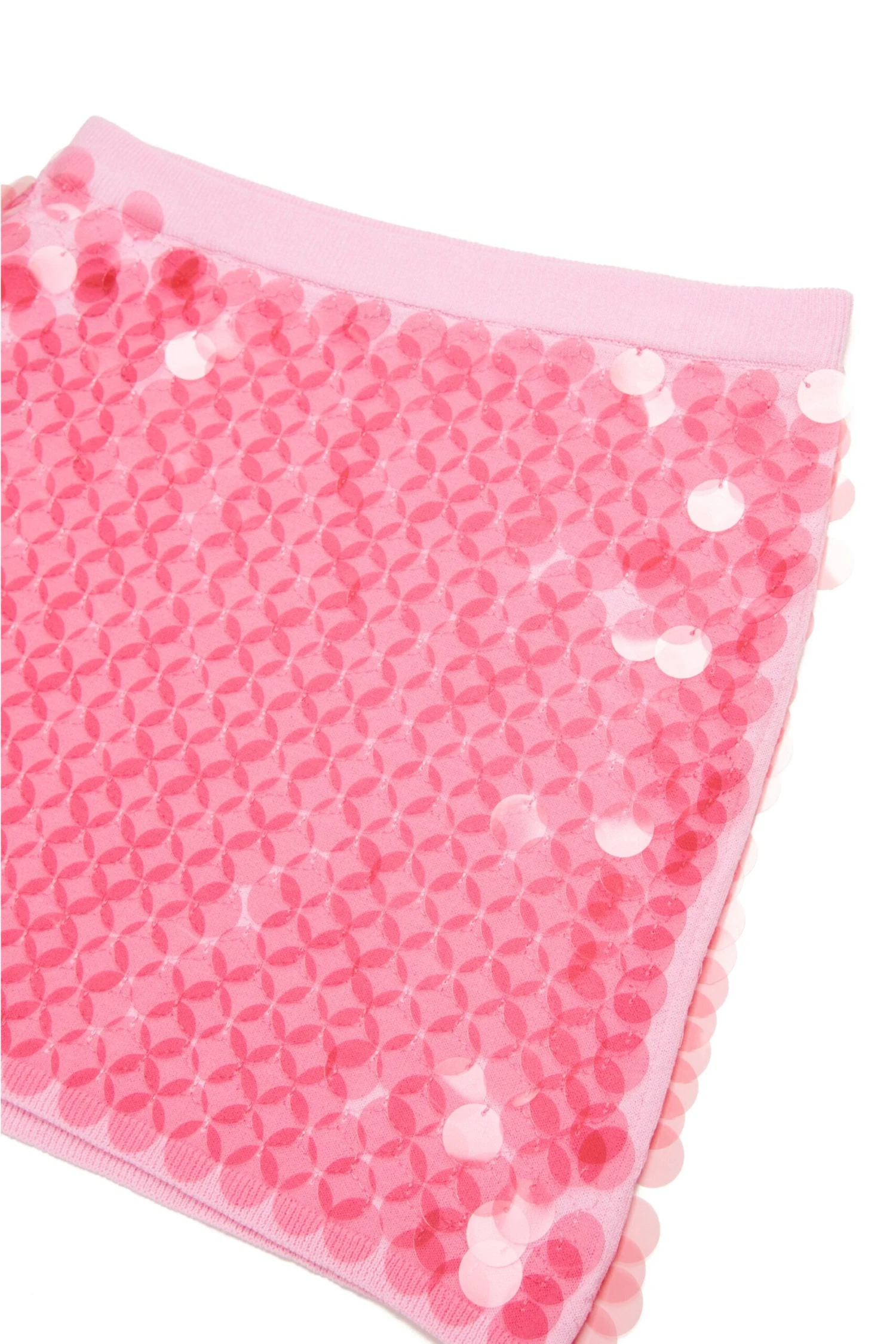 Cotton mini skirt with maxi transparent sequins applied all over. Ribbed construction on the waist and bottom. A garment with a refined style, suitable for the most special occasions.