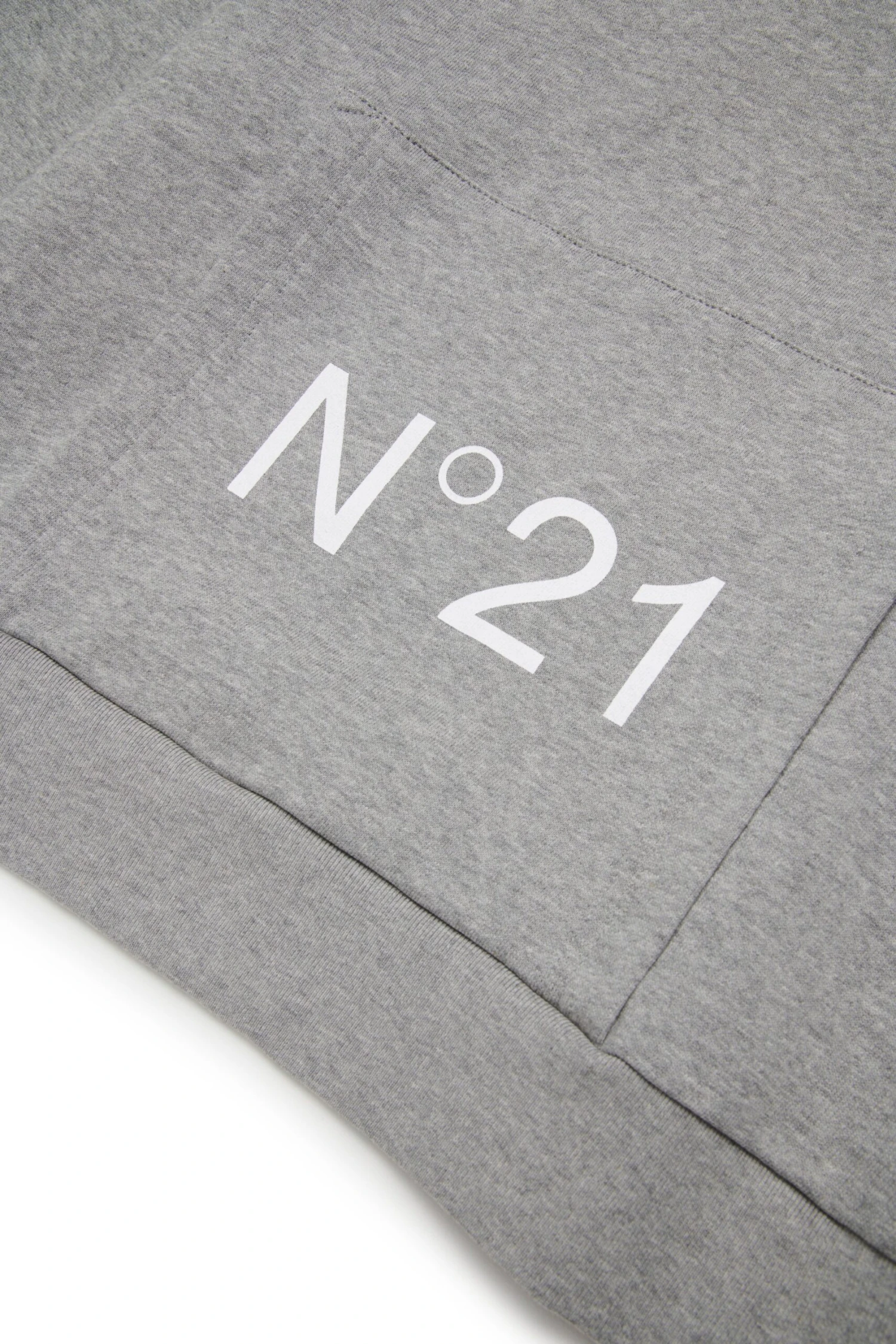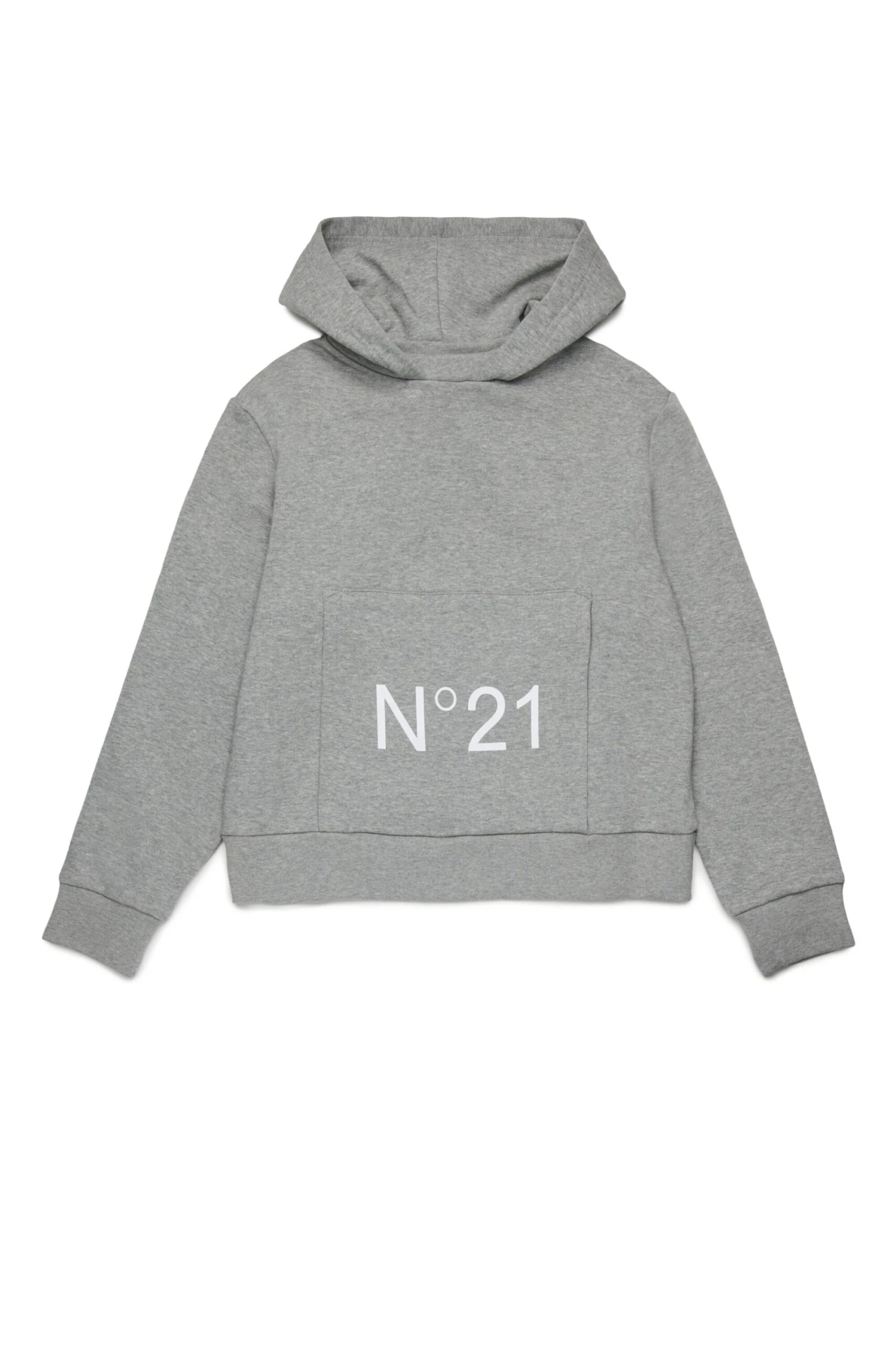 Long-sleeved hooded sweatshirt. Featuring a contrasting color N°21 Institutional logo on the front pocket. Ribbed construction on cuffs and bottom hem. Made of 100% cotton. An easy garment to pair with a variety of occasions.