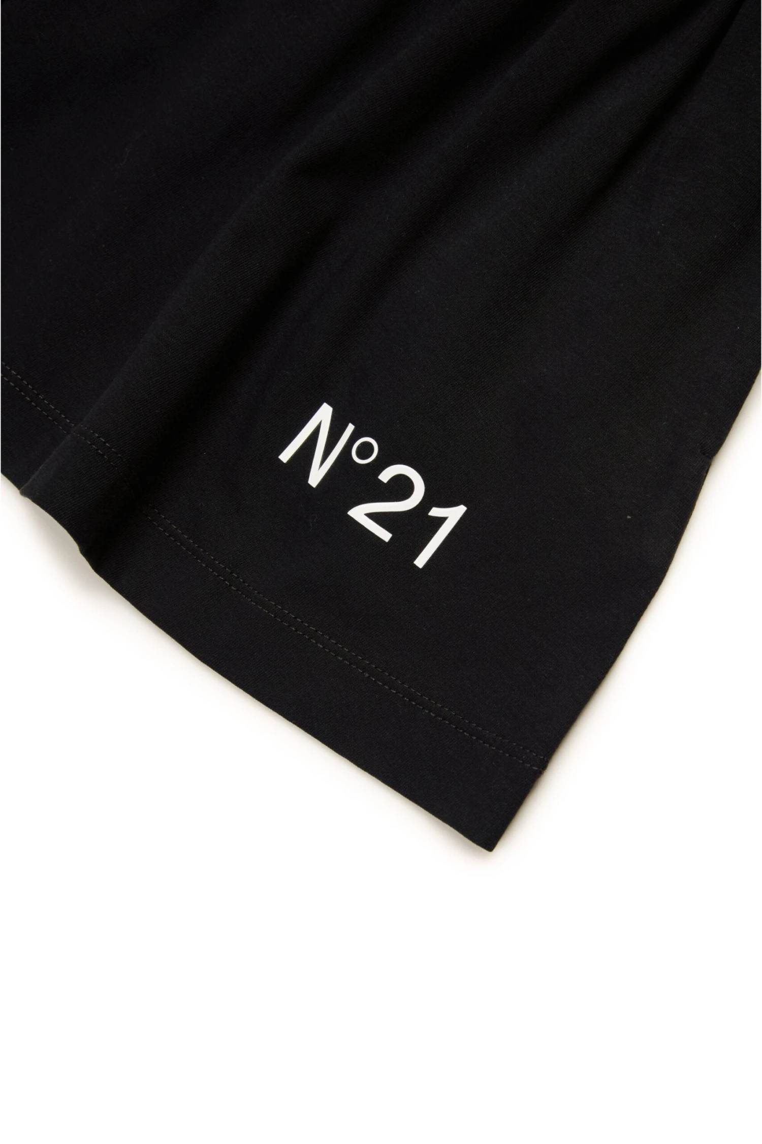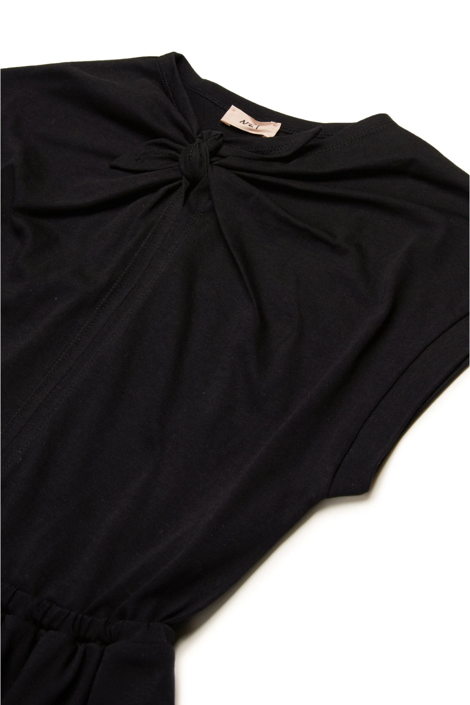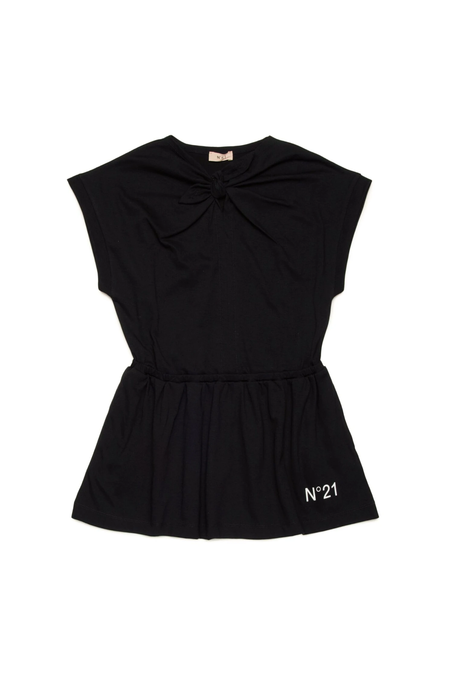 Sleeveless crew-neck dress in jersey. Front knot. Contrasting rubber-coated N°21 Institutional logo on front. Inner waistband Ruffles on bottom. Side pockets. Made of 100% cotton.