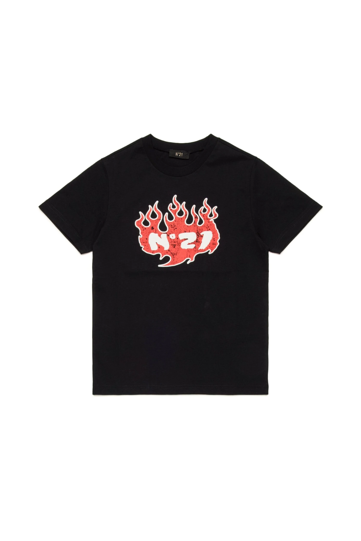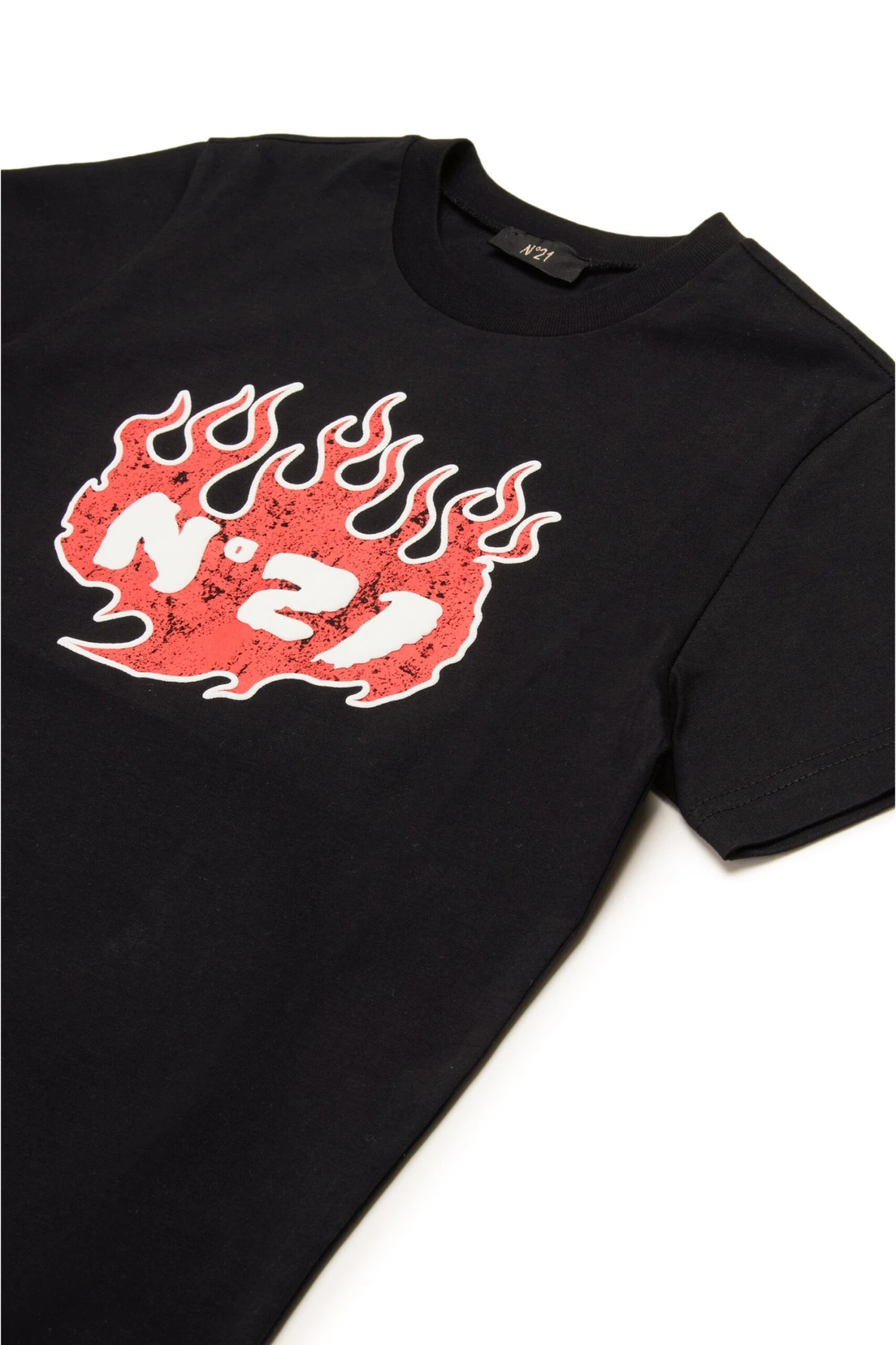Short-sleeved crew-neck T-shirt in jersey. Features Flames graphic with outline and N°21 rubber effect. Made of 100% cotton.